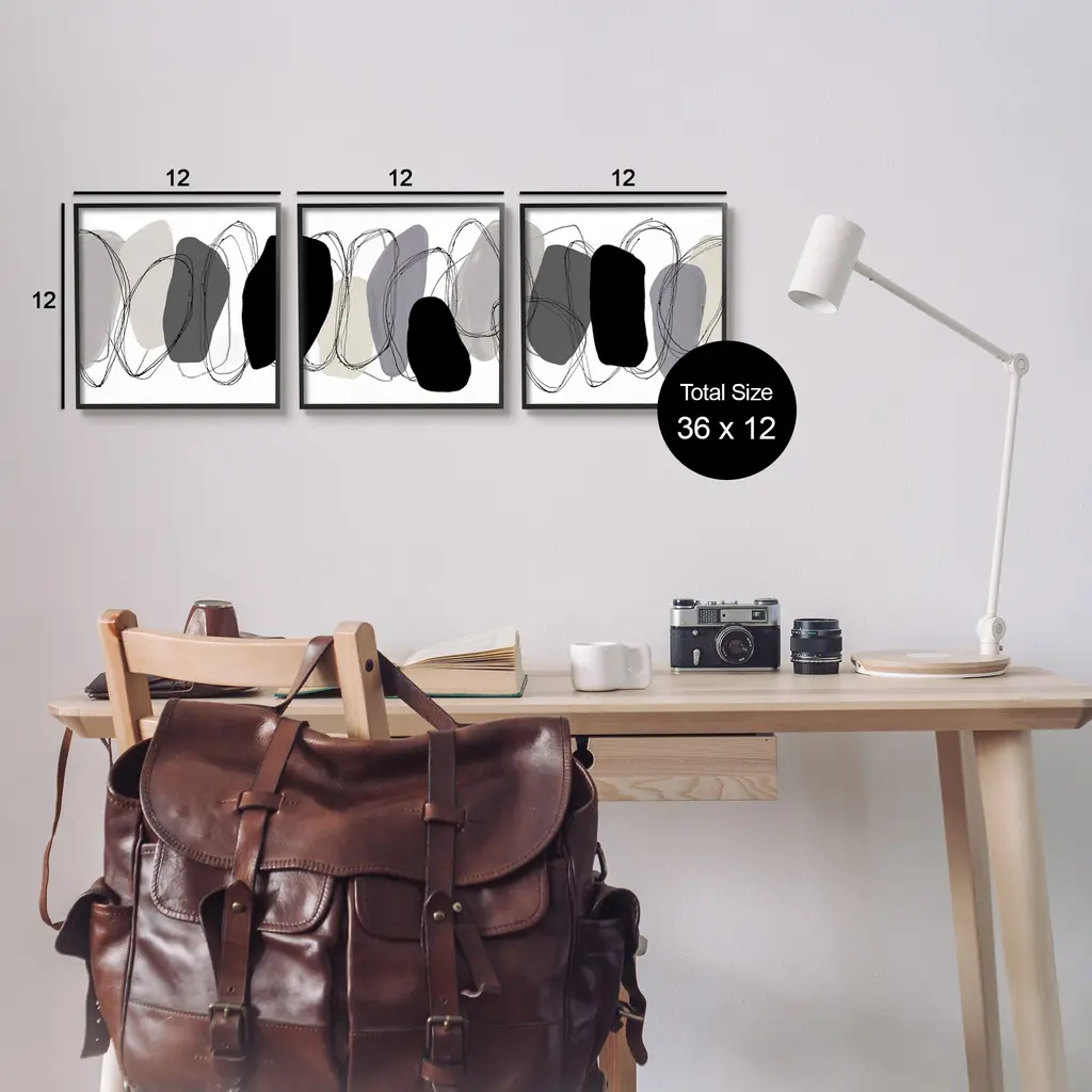 Stupell Abstract Grey Pebbles 3 Piece Framed Giclee Art Set Design By Ruth Fromstein - 12 X 12 - Black