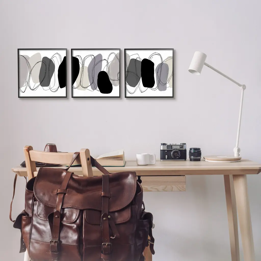 Fill any space in your home or office with our Framed Wall Art Sets. Our framed artwork is securely mounted into a 1.5-inch thick wood grain frame and ready to hang. Frames are available in three alluring styles: black, gray farmhouse and white. Stupell Wall Art is made in the USA.Features: Dimensions: 3 Piece Set, Each Panel is 12 x 1.5 x 12 FramedFramed Giclee Set Sizes Include Standard: 3pc, Each is 12 x 1.5 x 12 Large: 3pc, Each is 17 x 1.5 x 17Wall Art is Ready to Hang with Hardware Free Hanging. No installation required. For Easy Set Up Lean or Layer Artwork on Shelf or Against Wall.Curated Wall Art Sets make it easy for you complete the theme for any room. Our giclée prints are carefully mounted on a durable MDF backing, and then perfectly finished in a 1.5 inch thick woodgrain frame. Mounted frame colors include black, gray farmhouse and white. Made In USA.Artwork Relates To: Abstract, Modern, Contemporary, Pebbles, NatureDesign by Ruth Fromstein