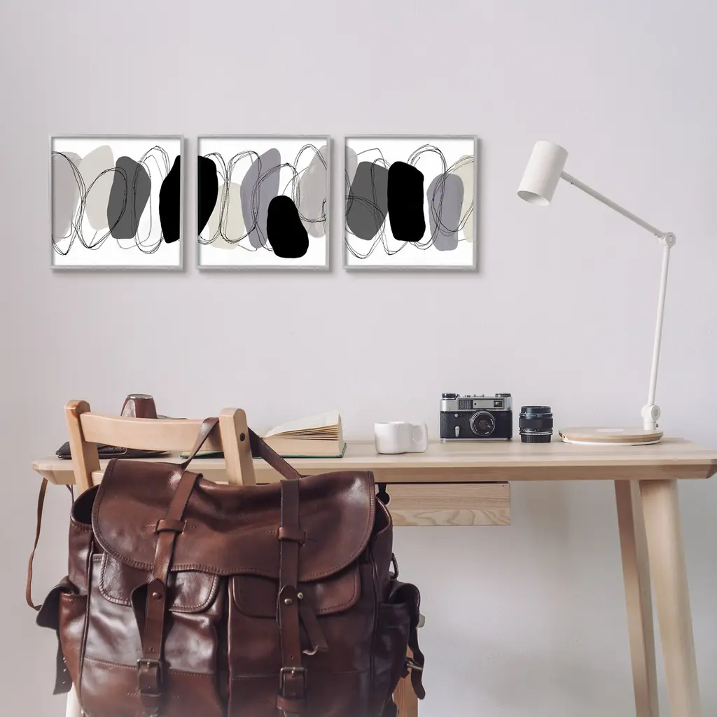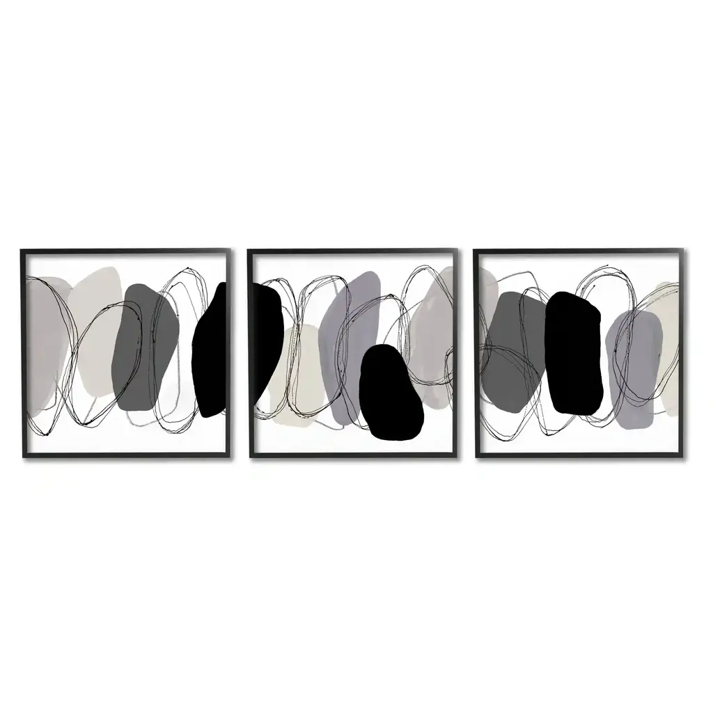 Fill any space in your home or office with our Framed Wall Art Sets. Our framed artwork is securely mounted into a 1.5-inch thick wood grain frame and ready to hang. Frames are available in three alluring styles: black, gray farmhouse and white. Stupell Wall Art is made in the USA.Features: Dimensions: 3 Piece Set, Each Panel is 12 x 1.5 x 12 FramedFramed Giclee Set Sizes Include Standard: 3pc, Each is 12 x 1.5 x 12 Large: 3pc, Each is 17 x 1.5 x 17Wall Art is Ready to Hang with Hardware Free Hanging. No installation required. For Easy Set Up Lean or Layer Artwork on Shelf or Against Wall.Curated Wall Art Sets make it easy for you complete the theme for any room. Our giclée prints are carefully mounted on a durable MDF backing, and then perfectly finished in a 1.5 inch thick woodgrain frame. Mounted frame colors include black, gray farmhouse and white. Made In USA.Artwork Relates To: Abstract, Modern, Contemporary, Pebbles, NatureDesign by Ruth Fromstein