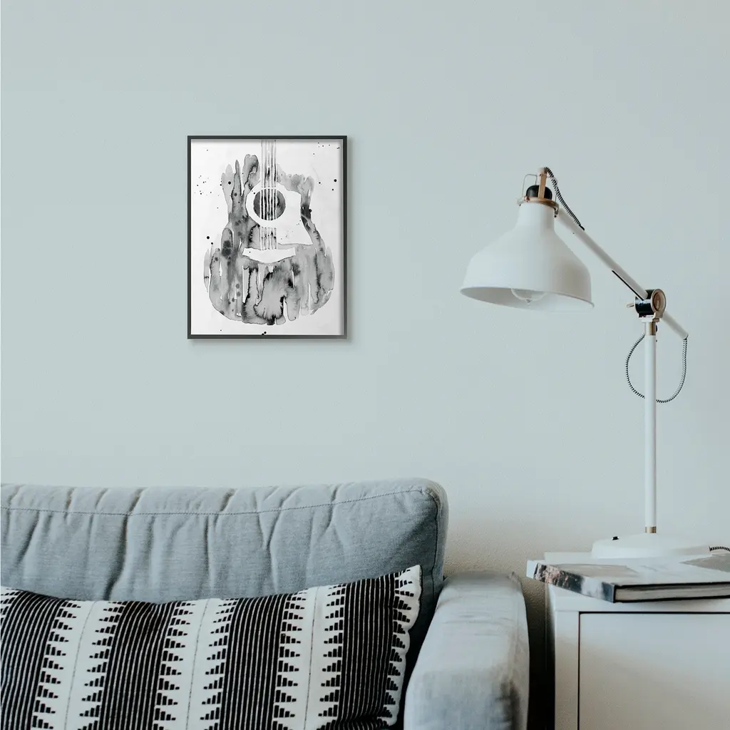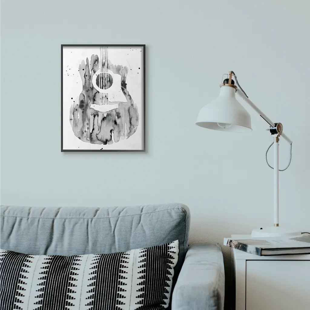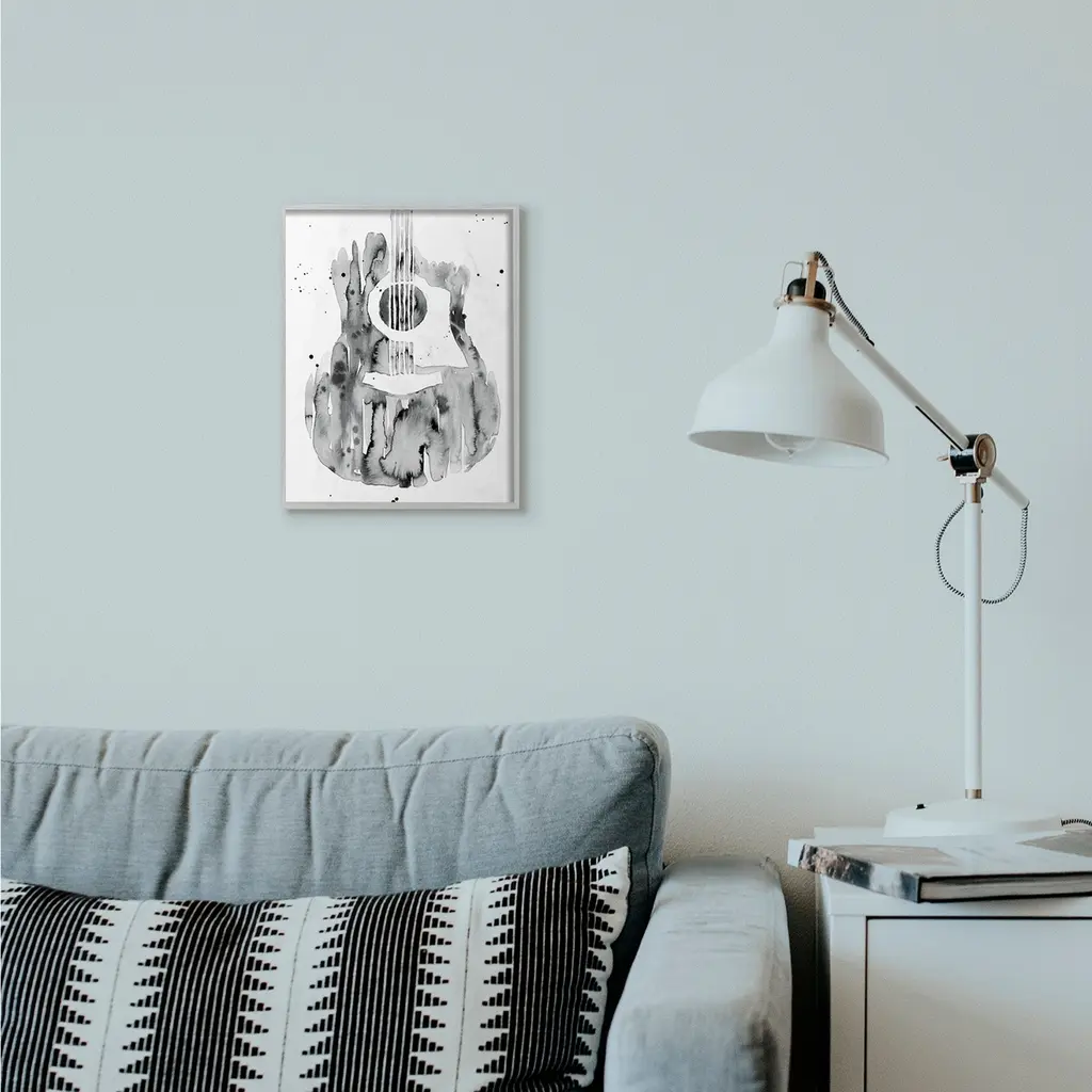 Stupell Abstract Guitar Watercolor Pattern Painting Framed Wall Art, Design By Annie Warren - 11 X 14 - Grey