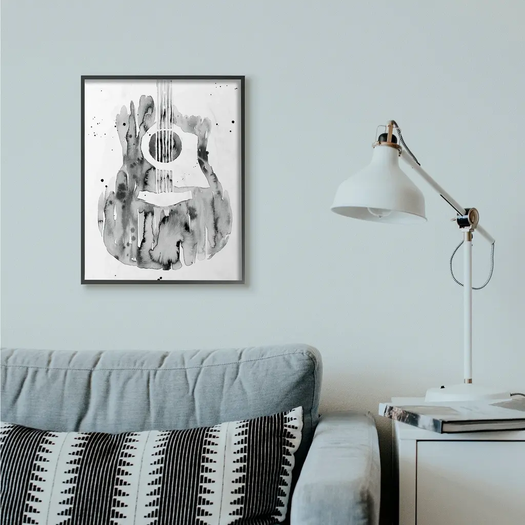 Stupell Abstract Guitar Watercolor Pattern Painting Framed Wall Art, Design By Annie Warren - 16 X 20 - Black