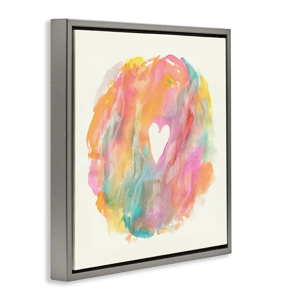 Elevate your home or office to the next level with Stupell Framed Floating Canvas Wall Art. Our premium hand-stretched canvas is mounted securely into a sturdy lightweight frame. The museum-style gap between the wrapped canvas and the box frame gives the illusion of floating artwork. Stupell Wall Art is made in the USA.Features: Dimensions: 18 x 1.7 x 18 Frame, 17 x 1.5 x 17 Canvas ArtFloating Frame Canvas Products are available in sizes 18"x18" and 25"x25". All Floating Frame Canvas Products have a 1.7" Depth.Wall Art is Ready to Hang with Hardware Free Hanging. No Installation required. For Easy Set Up Lean or Layer Artwork on Shelf or Against Wall. Artwork is Permently Fixed into the Frame.Our elevated 1.7" Thick Floating Frame is the perfect complement to our canvas style Wall Art. We use only the highest quality inks in house with industry leading printing solutions. Canvas is hand stretched over a durable wood foundation and then mounted securly into a Modern Box Frame. Made in the USA.Artwork Relates To: Abstract, Modern, Heart, Rainbow, Kids, PatternDesign by Elvira Errico
