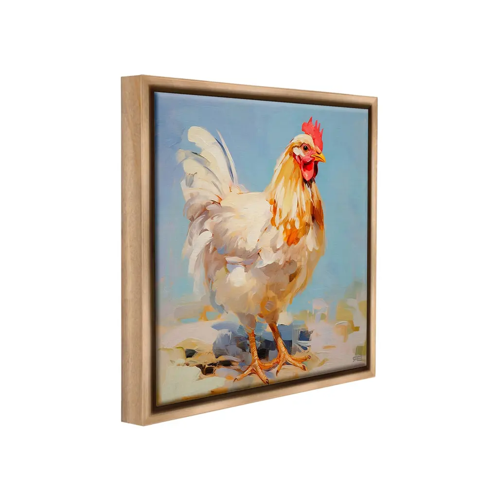 Elevate your home or office to the next level with Stupell Framed Floating Canvas Wall Art. Our premium hand-stretched canvas is mounted securely into a sturdy lightweight frame. The museum-style gap between the wrapped canvas and the box frame gives the illusion of floating artwork. Stupell Wall Art is made in the USA.Features: Dimensions: 18 x 1.7 x 18 Frame, 17 x 1.5 x 17 Canvas ArtFloating Frame Canvas Products are available in sizes 18"x18" and 25"x25". All Floating Frame Canvas Products have a 1.7" Depth.Wall Art is Ready to Hang with Hardware Free Hanging. No Installation required. For Easy Set Up Lean or Layer Artwork on Shelf or Against Wall. Artwork is Permently Fixed into the Frame.Our elevated 1.7" Thick Floating Frame is the perfect complement to our canvas style Wall Art. We use only the highest quality inks in house with industry leading printing solutions. Canvas is hand stretched over a durable wood foundation and then mounted securly into a Modern Box Frame. Made in the USA.Artwork Relates To: Animal, Bird, Chicken, Fowl, Poultry, Hen, Rooster, Farm, Abstract, ModernDesign by RB