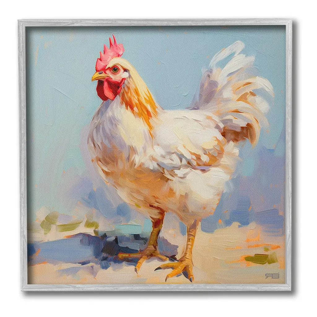Add dimension to any room with our textured Framed Giclee Artwork. Our framed artwork is securely mounted into a 1.5-inch thick wood grain frame and ready to hang. Frames are available in three alluring styles: black, gray farmhouse and white. In addition, you should check out our oversized options if you want a statement piece. Stupell Wall Art is made in the USA.Features: Dimensions: 12 x 1.5 x 12 FramedFramed Giclee Product Sizes Include 12"x12", 17"x17", and 24"x24". Framed Giclee Products have a 1.5" Depth. Wall Art is Ready to Hang with Hardware Free Hanging. No installation required. For Easy Set Up Lean or Layer Artwork on Shelf or Against Wall.Our giclée prints are carefully mounted on a durable MDF backing, and then perfectly finished in a 1.5 inch thick woodgrain frame. Mounted frame colors include black, gray farmhouse and white. Made In USA.Artwork Relates To: Animal, Bird, Chicken, Fowl, Poultry, Hen, Rooster, Farm, Abstract, ModernDesign by RB