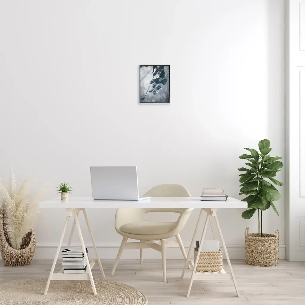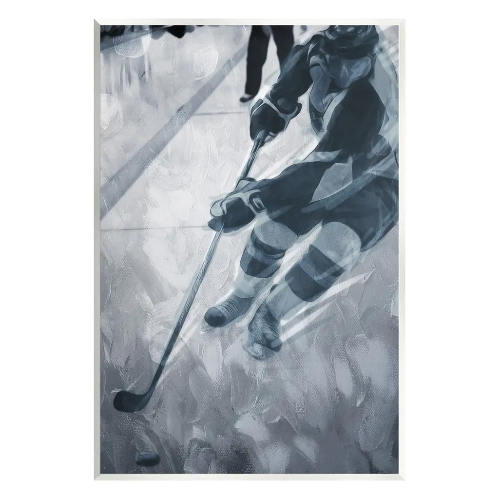 Add dimension to any room with our textured Framed Giclee Artwork. Our framed artwork is securely mounted into a 1.5-inch thick wood grain frame and ready to hang. Frames are available in three alluring styles: black, gray farmhouse and white. In addition, you should check out our oversized options if you want a statement piece. Stupell Wall Art is made in the USA.Features: Dimensions: 11 x 1.5 x 14 FramedFramed Giclee Products are available in the sizes 11"x14", 16"x20" or 24"x30". All Framed Giclee Products have a 1.5" Depth. Wall Art is Ready to Hang with Hardware Free Hanging. No installation required. For Easy Set Up Lean or Layer Artwork on Shelf or Against Wall.Our giclée prints are carefully mounted on a durable MDF backing, and then perfectly finished in a 1.5 inch thick woodgrain frame. Mounted frame colors include black, gray farmhouse and white. Made In USA.Artwork Relates To: Hockey, Ice Hockey, Rink, Skating, Sport, Hockey Stick, Hockey Puck, Abstract, MonochromeDesign by Milli Villa