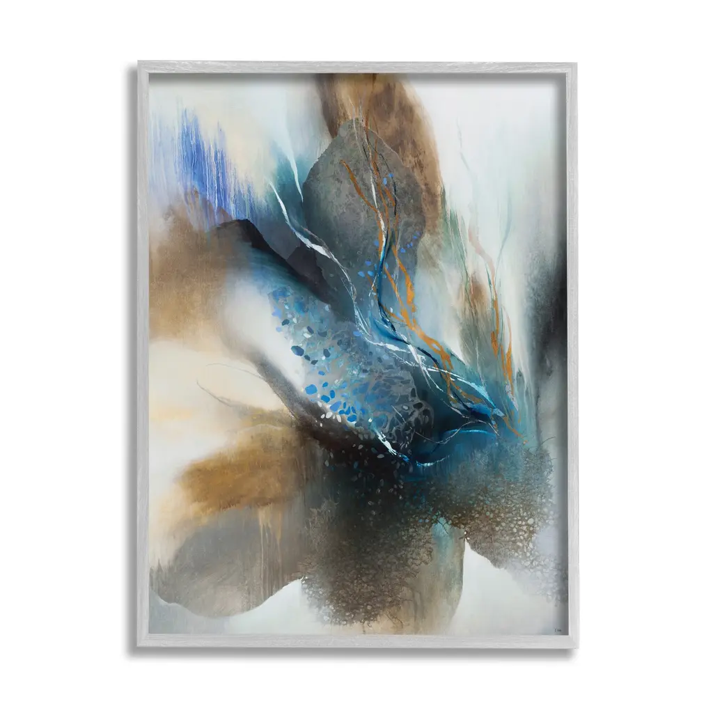 Stupell Abstract Interpretation Of Blue Speckled Bird Framed Wall Art - Grey - 16 X 20 - Black