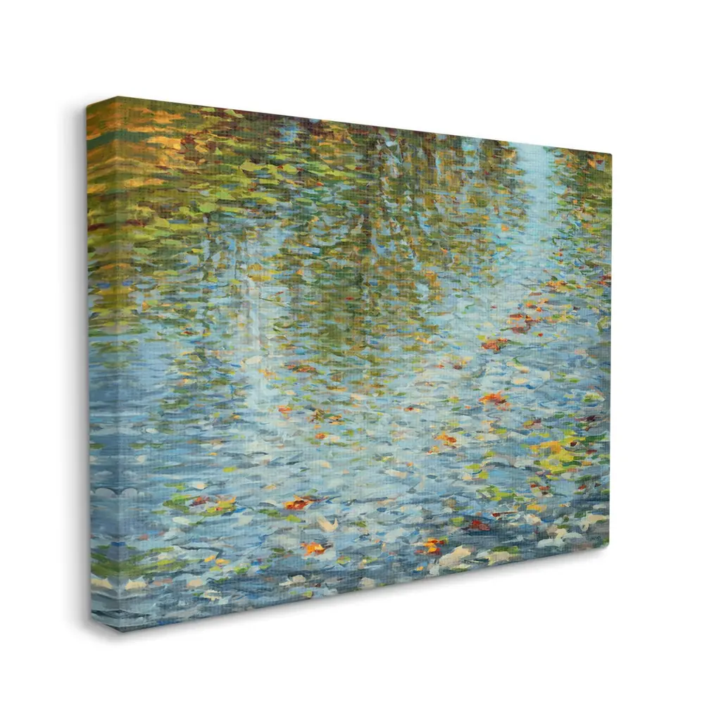 Stupell Abstract Lake Water Reflection Expressive Summer Pond Leaves Canvas Wall Art - Green - 40 X 30