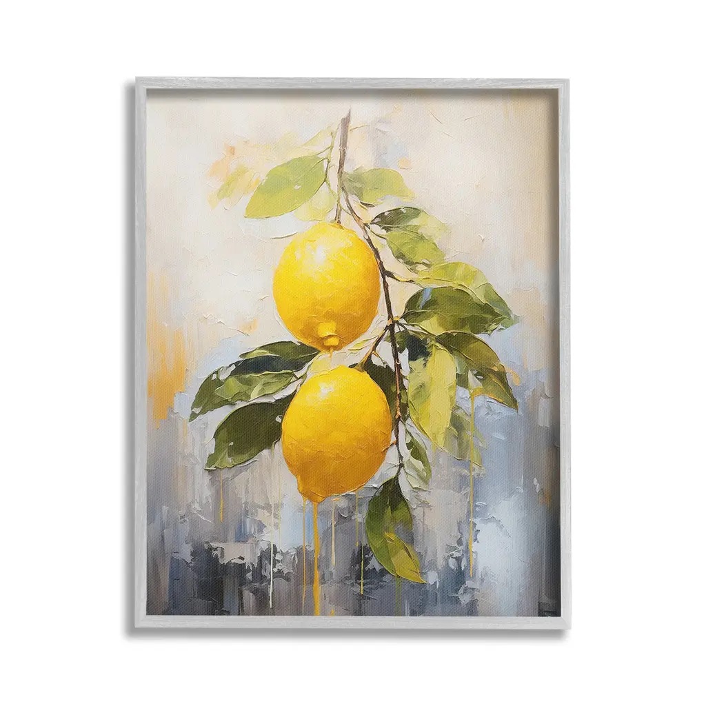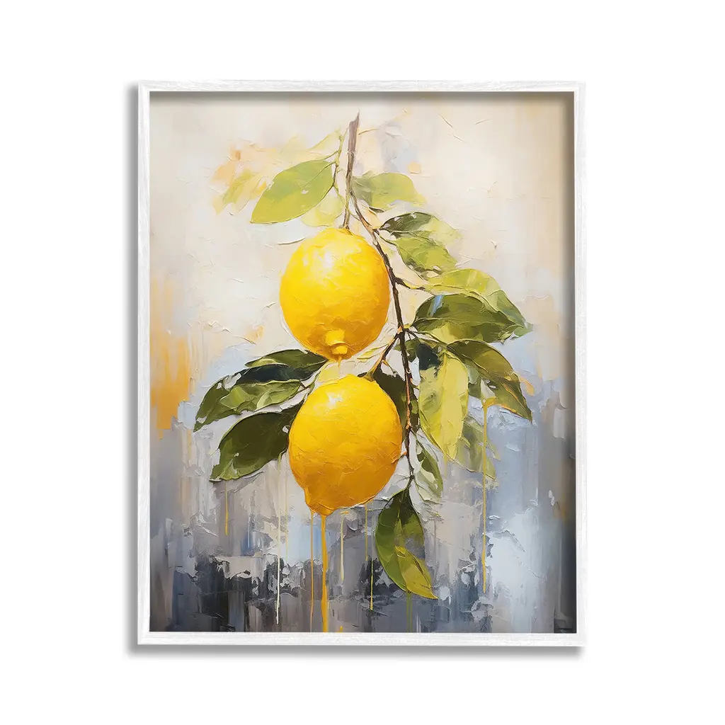 Add dimension to any room with our textured Framed Giclee Artwork. Our framed artwork is securely mounted into a 1.5-inch thick wood grain frame and ready to hang. Frames are available in three alluring styles: black, gray farmhouse and white. In addition, you should check out our oversized options if you want a statement piece. Stupell Wall Art is made in the USA.Features: Dimensions: 11 x 1.5 x 14 FramedFramed Giclee Products are available in the sizes 11"x14", 16"x20" or 24"x30". All Framed Giclee Products have a 1.5" Depth. Wall Art is Ready to Hang with Hardware Free Hanging. No installation required. For Easy Set Up Lean or Layer Artwork on Shelf or Against Wall.Our giclée prints are carefully mounted on a durable MDF backing, and then perfectly finished in a 1.5 inch thick woodgrain frame. Mounted frame colors include black, gray farmhouse and white. Made In USA.Artwork Relates To: Citrus Fruit, Fruit, Plant, Produce, Lemon, Modern, Abstract, PatternDesign by Ramona Murdock