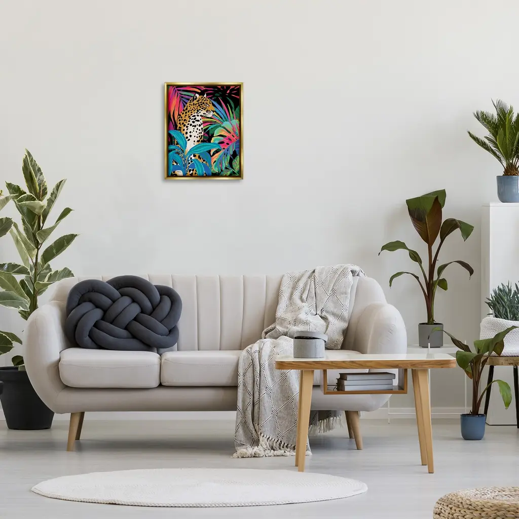 Elevate your home or office to the next level with Stupell Framed Floating Canvas Wall Art. Our premium hand-stretched canvas is mounted securely into a sturdy lightweight frame. The museum-style gap between the wrapped canvas and the box frame gives the illusion of floating artwork. Stupell Wall Art is made in the USA.Features: Dimensions: 17 x 1.7 x 21 Frame, 16 x 1.5 x 20 Canvas ArtFloating Frame Canvas Products are available in sizes 17"x21" and 25"x31". All Floating Frame Canvas Products have a 1.7" Depth.Wall Art is Ready to Hang with Hardware Free Hanging. No Installation required. For Easy Set Up Lean or Layer Artwork on Shelf or Against Wall. Artwork is Permently Fixed into the Frame.Our elevated 1.7" Thick Floating Frame is the perfect complement to our canvas style Wall Art. We use only the highest quality inks in house with industry leading printing solutions. Canvas is hand stretched over a durable wood foundation and then mounted securly into a Modern Box Frame. Made in the USA.Artwork Relates To: Plant, Jungle, Nature, Animal, Mammal, Wildlife, Rainforest, Leaf, Leopard, Abstract, Modern, BotanicalDesign by Cat Thurman Designs