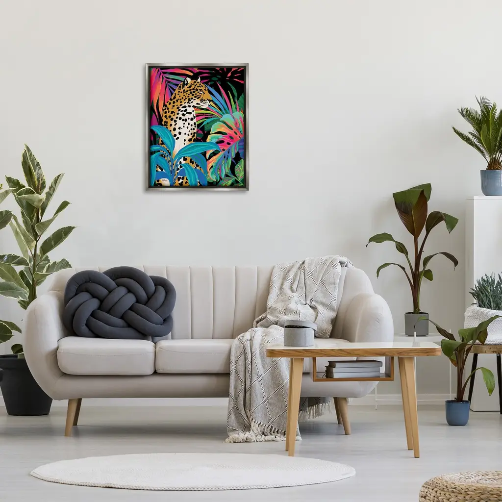 Elevate your home or office to the next level with Stupell Framed Floating Canvas Wall Art. Our premium hand-stretched canvas is mounted securely into a sturdy lightweight frame. The museum-style gap between the wrapped canvas and the box frame gives the illusion of floating artwork. Stupell Wall Art is made in the USA.Features: Dimensions: 17 x 1.7 x 21 Frame, 16 x 1.5 x 20 Canvas ArtFloating Frame Canvas Products are available in sizes 17"x21" and 25"x31". All Floating Frame Canvas Products have a 1.7" Depth.Wall Art is Ready to Hang with Hardware Free Hanging. No Installation required. For Easy Set Up Lean or Layer Artwork on Shelf or Against Wall. Artwork is Permently Fixed into the Frame.Our elevated 1.7" Thick Floating Frame is the perfect complement to our canvas style Wall Art. We use only the highest quality inks in house with industry leading printing solutions. Canvas is hand stretched over a durable wood foundation and then mounted securly into a Modern Box Frame. Made in the USA.Artwork Relates To: Plant, Jungle, Nature, Animal, Mammal, Wildlife, Rainforest, Leaf, Leopard, Abstract, Modern, BotanicalDesign by Cat Thurman Designs
