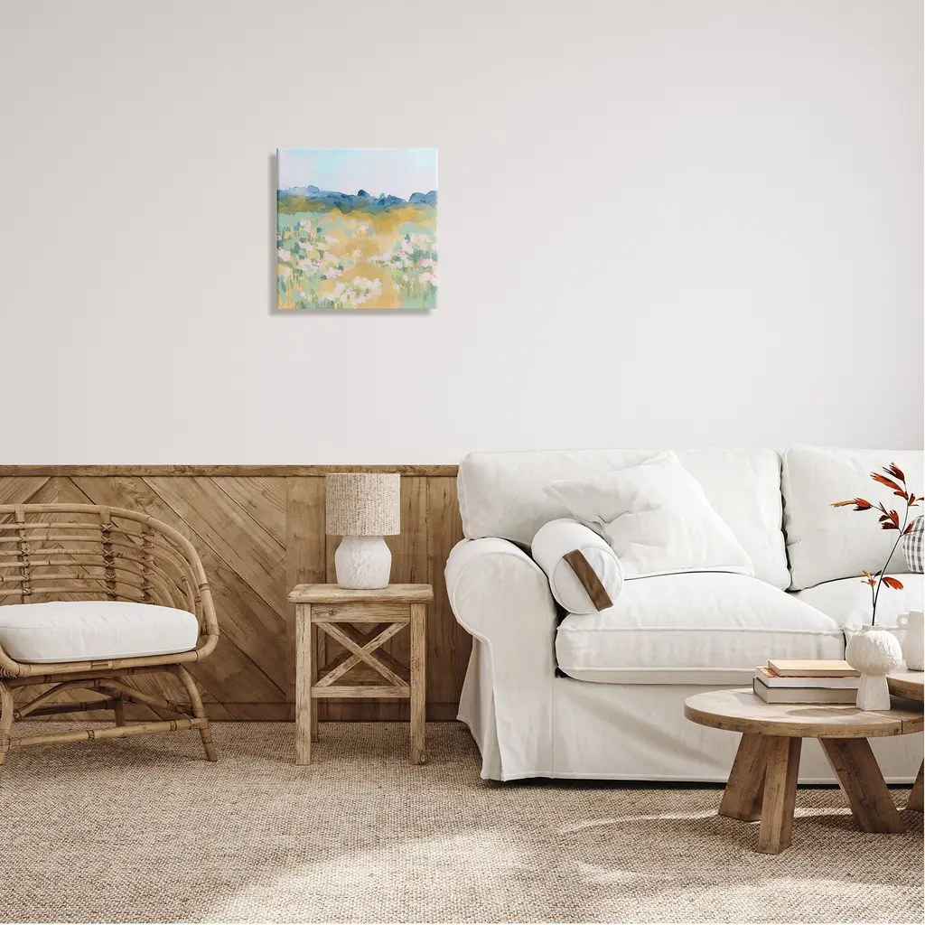 We create our stretched canvas to the highest standards. Using only the highest quality inks and canvas on Mimaki printers, we hand-cut and stretch each piece over a 1.5-inch thick wooden frame for hanging. As a result, the art comes ready to hang on the sturdy ledge with no installation required. Stupell Wall Art is made in the USA.Features: Dimensions: 17 x 1.5 x 17 InchesStretched Canvas Sizes Include Standard: 17 x 1.5 x 17 Large: 24 x 1.5 x 24 X-Large: 30 x 1.5 x 30 Oversized: 36 x 1.5 x 36Wall Art is Ready to Hang with Hardware Free Hanging. No installation required. For Easy Set Up Lean or Layer Artwork on Shelf or Against Wall.Our stretched canvas is created with the highest standards. We use only the highest quality inks and canvas on our in house Mimaki printers, and then hand cut and stretch each piece over a 1.5 inch thick wooden frame for hanging. Made In USA.Artwork Relates To: Painting, Nature, Flower, Plant, Field, Modern, Meadow, AbstractDesign by June Erica Vess