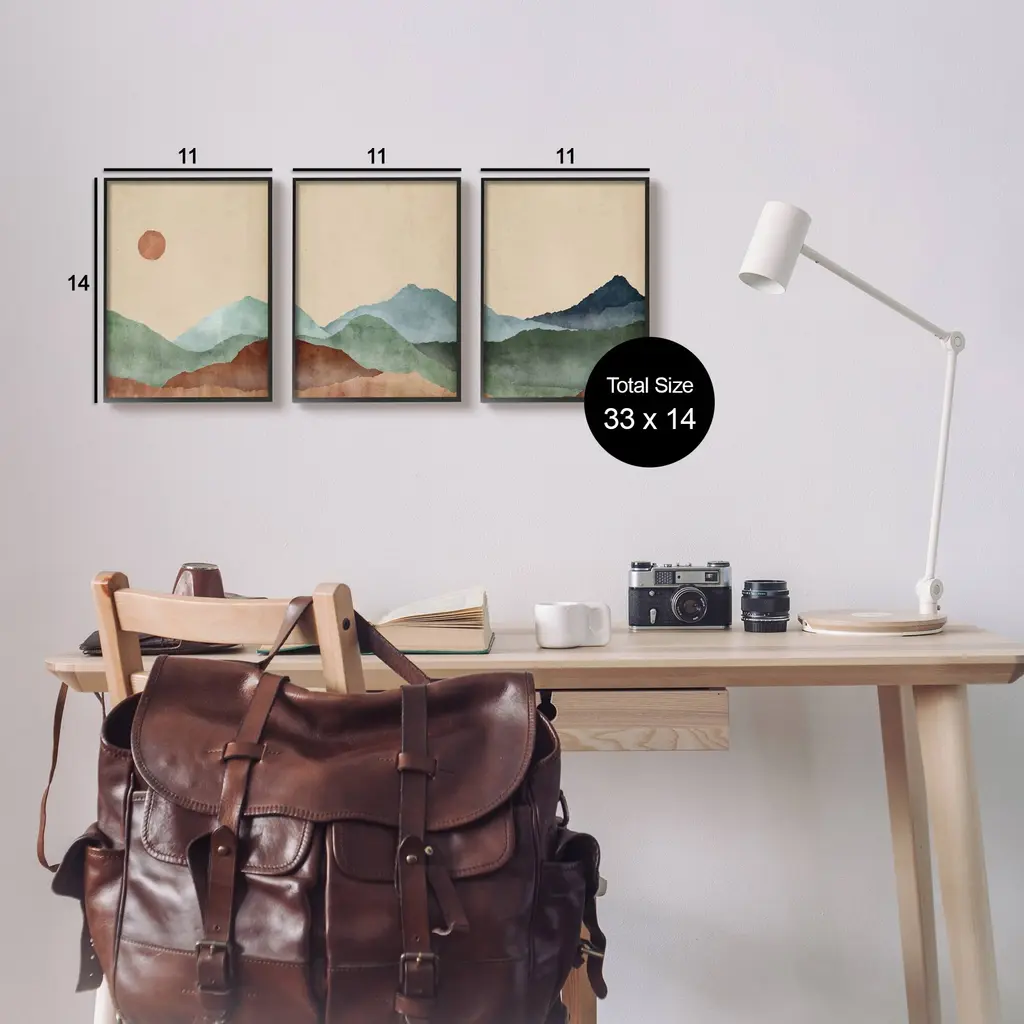 Fill any space in your home or office with our Framed Wall Art Sets. Our textured artwork will add more depth and dimension to any space. Each piece is mounted into a 1.5 inch thick ebony wood grain frame that is ready to hang. Looking for a statement piece? Our boxed framed products are now available in three alluring styles: black, gray farmhouse and white. We have oversized artwork available. Room Type: Living Room, Den, Hallway, Office, Entryway, Study, Dining Room or Bedroom, Guest Room, Studio, Dorm or BoudoirFeatures: Dimensions: 3 Piece Set, Each Panel is 11 x 1.5 x 14 FramedFramed Giclee Set Sizes Include Standard: 3pc, Each is 11 x 1.5 x 14 Large: 3pc, Each is 16 x 1.5 x 20 Oversized: 3pc, Each is 24 x 1.5 x 30Wall Art is Ready to Hang - No Installation or Hardware Needed. For Easy Set Up Lean or Layer Artwork on Shelf or Against Wall.Curated Wall Art Sets make it easy for you complete the theme for any room. Our giclée prints are carefully mounted on a durable MDF backing, and then perfectly finished in a 1.5 inch thick woodgrain frame. Mounted frame colors include black, gray farmhouse and white. Made In USA.Artwork Relates To: Mountain, Mountain Range, Nature, Peak, SceneryDesign by JJ Design House LLC