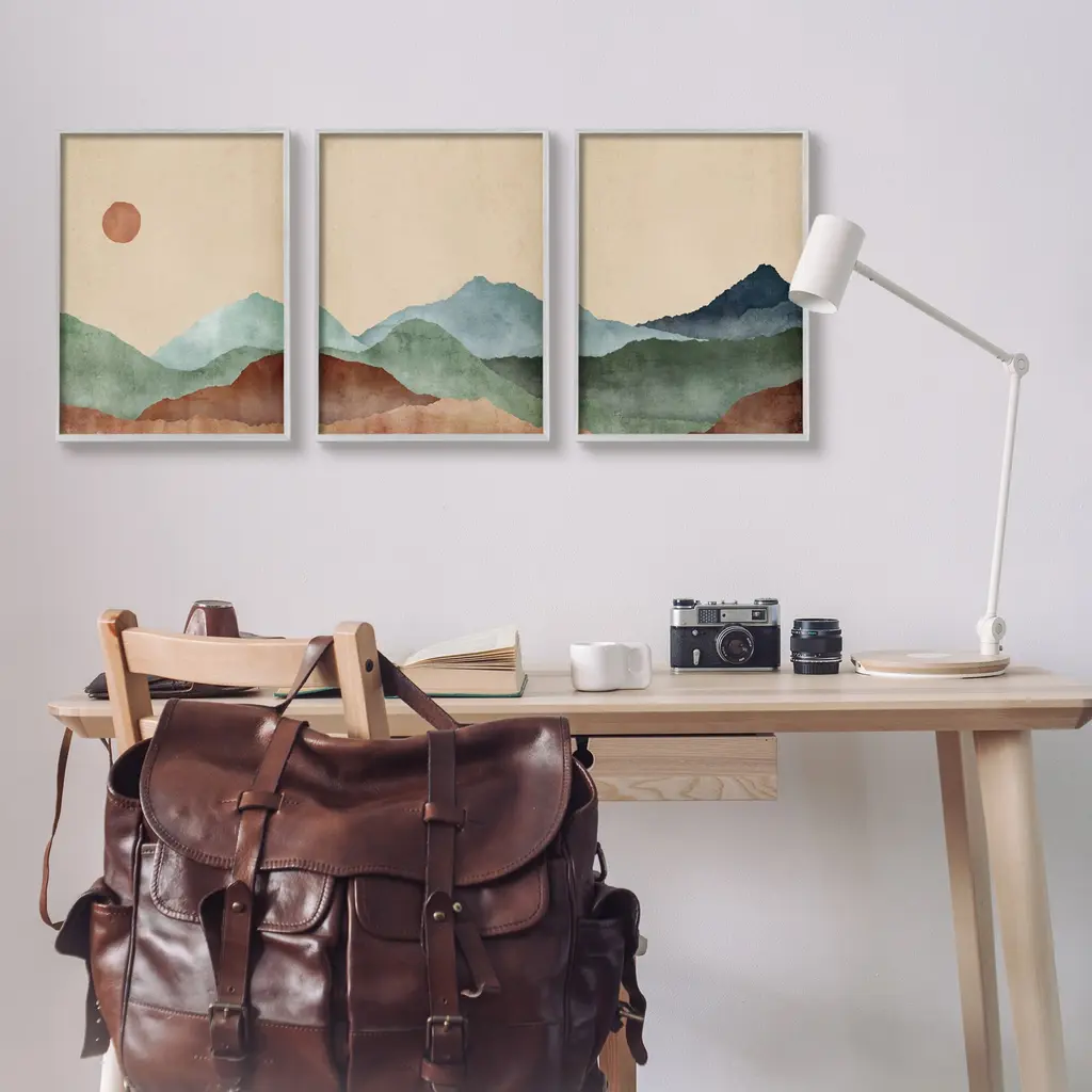 Fill any space in your home or office with our Framed Wall Art Sets. Our textured artwork will add more depth and dimension to any space. Each piece is mounted into a 1.5 inch thick ebony wood grain frame that is ready to hang. Looking for a statement piece? Our boxed framed products are now available in three alluring styles: black, gray farmhouse and white. We have oversized artwork available. Room Type: Living Room, Den, Hallway, Office, Entryway, Study, Dining Room or Bedroom, Guest Room, Studio, Dorm or BoudoirFeatures: Dimensions: 3 Piece Set, Each Panel is 11 x 1.5 x 14 FramedFramed Giclee Set Sizes Include Standard: 3pc, Each is 11 x 1.5 x 14 Large: 3pc, Each is 16 x 1.5 x 20 Oversized: 3pc, Each is 24 x 1.5 x 30Wall Art is Ready to Hang - No Installation or Hardware Needed. For Easy Set Up Lean or Layer Artwork on Shelf or Against Wall.Curated Wall Art Sets make it easy for you complete the theme for any room. Our giclée prints are carefully mounted on a durable MDF backing, and then perfectly finished in a 1.5 inch thick woodgrain frame. Mounted frame colors include black, gray farmhouse and white. Made In USA.Artwork Relates To: Mountain, Mountain Range, Nature, Peak, SceneryDesign by JJ Design House LLC