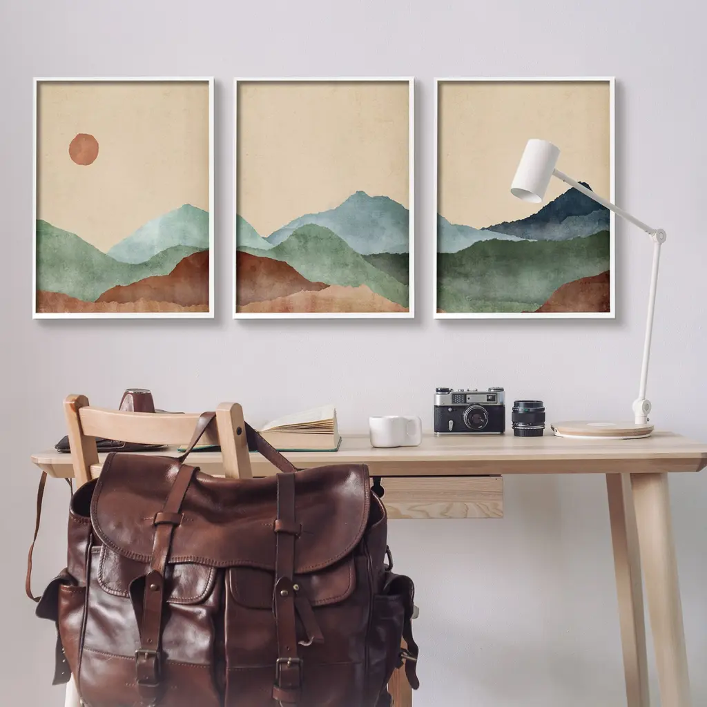 Fill any space in your home or office with our Framed Wall Art Sets. Our textured artwork will add more depth and dimension to any space. Each piece is mounted into a 1.5 inch thick ebony wood grain frame that is ready to hang. Looking for a statement piece? Our boxed framed products are now available in three alluring styles: black, gray farmhouse and white. We have oversized artwork available. Room Type: Living Room, Den, Hallway, Office, Entryway, Study, Dining Room or Bedroom, Guest Room, Studio, Dorm or BoudoirFeatures: Dimensions: 3 Piece Set, Each Panel is 11 x 1.5 x 14 FramedFramed Giclee Set Sizes Include Standard: 3pc, Each is 11 x 1.5 x 14 Large: 3pc, Each is 16 x 1.5 x 20 Oversized: 3pc, Each is 24 x 1.5 x 30Wall Art is Ready to Hang - No Installation or Hardware Needed. For Easy Set Up Lean or Layer Artwork on Shelf or Against Wall.Curated Wall Art Sets make it easy for you complete the theme for any room. Our giclée prints are carefully mounted on a durable MDF backing, and then perfectly finished in a 1.5 inch thick woodgrain frame. Mounted frame colors include black, gray farmhouse and white. Made In USA.Artwork Relates To: Mountain, Mountain Range, Nature, Peak, SceneryDesign by JJ Design House LLC