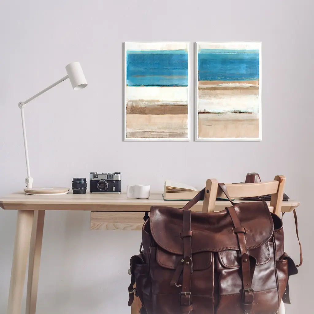 Fill any space with Stupell Wall Art Sets. Our wall plaques start as high-quality lithograph prints mounted on durable 0.5-inch thick MDF wood. Each piece is hand finished and comes with a fresh layer of white foil on the sides to give it a crisp, clean look. Plaques arrive ready to hang without installation and come with removable plastic corners to keep them from damage in transit. Stupell Industries Wall Art is made in the USA.Features: Dimensions: 2 Piece Set, Each Panel is 10 x 0.5 x 15 InchesWall Plaque Set Sizes Include Standard: 2pc, Each is 10 x 0.5 x 15 Oversized: 2pc, Each is 13 x 0.5 x 19Wall Art is Ready to Hang with Hardware Free Hanging. No installation required. For Easy Set Up Lean or Layer Artwork on Shelf or Against Wall.All of our wall plaques start off as high quality lithograph prints that are then mounted on durable 0.5 inch thick MDF wood. Each piece is hand finished and comes with a fresh layer of foil on the sides to give it a crisp clean look. Made In USA.Artwork Relates To: Painting, Modern, Abstract, Blue, BrownDesign by Flora Kouta
