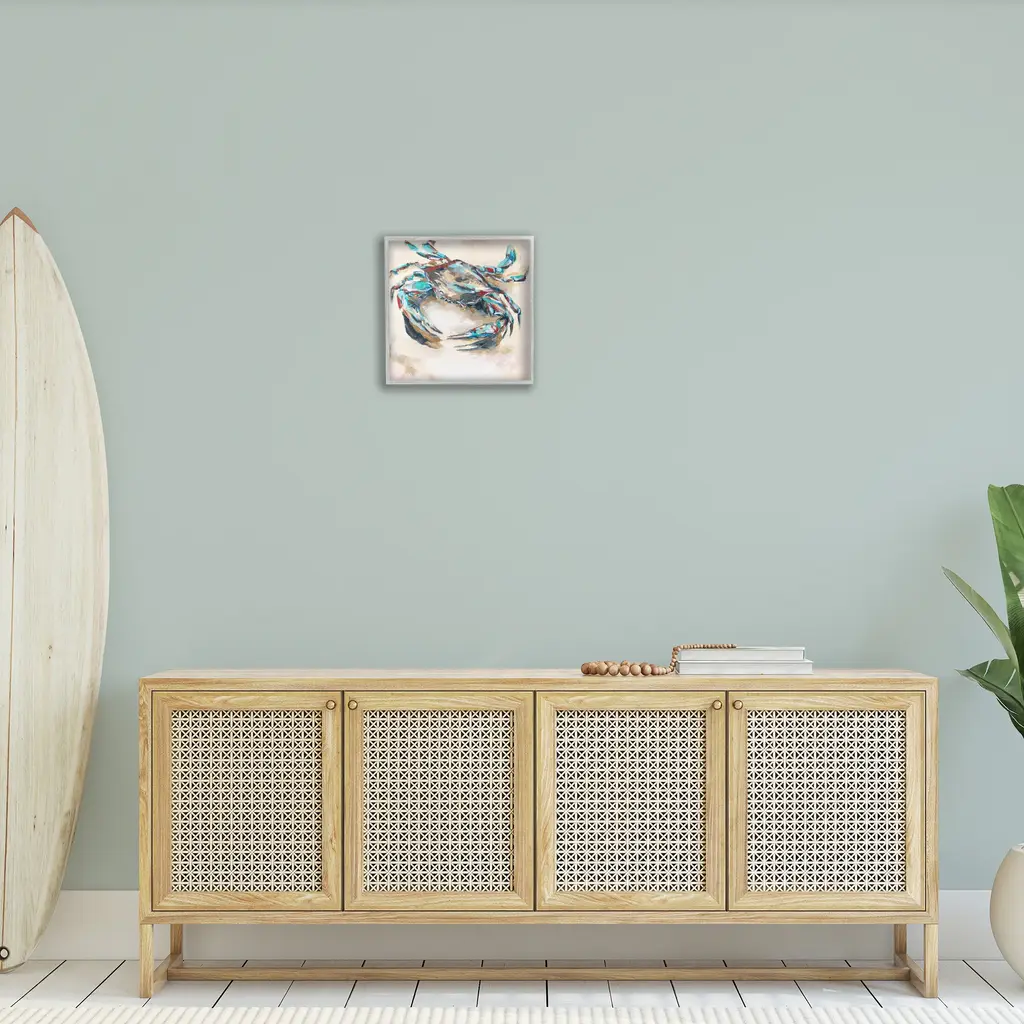 Add dimension to any room with our textured Framed Giclee Artwork. Our framed artwork is securely mounted into a 1.5-inch thick wood grain frame and ready to hang. Frames are available in three alluring styles: black, gray farmhouse and white. In addition, you should check out our oversized options if you want a statement piece. Stupell Wall Art is made in the USA.Features: Dimensions: 12 x 1.5 x 12 FramedFramed Giclee Product Sizes Include 12"x12", 17"x17", and 24"x24". Framed Giclee Products have a 1.5" Depth. Wall Art is Ready to Hang with Hardware Free Hanging. No installation required. For Easy Set Up Lean or Layer Artwork on Shelf or Against Wall.Our giclée prints are carefully mounted on a durable MDF backing, and then perfectly finished in a 1.5 inch thick woodgrain frame. Mounted frame colors include black, gray farmhouse and white. Made In USA.Artwork Relates To: Animal, Crab, Sea Life, Fish, Nautical, Beach, Abstract, ModernDesign by Melissa Wang