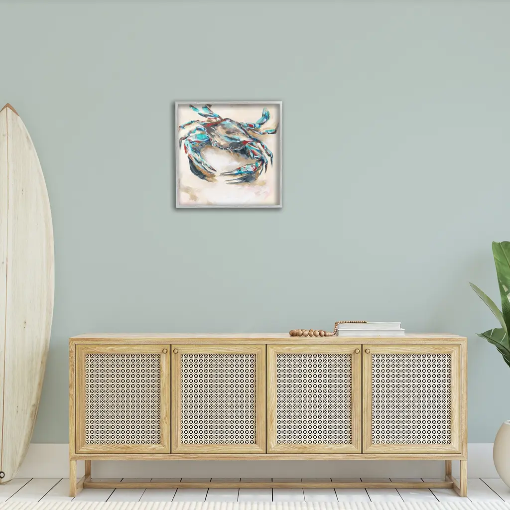 Add dimension to any room with our textured Framed Giclee Artwork. Our framed artwork is securely mounted into a 1.5-inch thick wood grain frame and ready to hang. Frames are available in three alluring styles: black, gray farmhouse and white. In addition, you should check out our oversized options if you want a statement piece. Stupell Wall Art is made in the USA.Features: Dimensions: 12 x 1.5 x 12 FramedFramed Giclee Product Sizes Include 12"x12", 17"x17", and 24"x24". Framed Giclee Products have a 1.5" Depth. Wall Art is Ready to Hang with Hardware Free Hanging. No installation required. For Easy Set Up Lean or Layer Artwork on Shelf or Against Wall.Our giclée prints are carefully mounted on a durable MDF backing, and then perfectly finished in a 1.5 inch thick woodgrain frame. Mounted frame colors include black, gray farmhouse and white. Made In USA.Artwork Relates To: Animal, Crab, Sea Life, Fish, Nautical, Beach, Abstract, ModernDesign by Melissa Wang