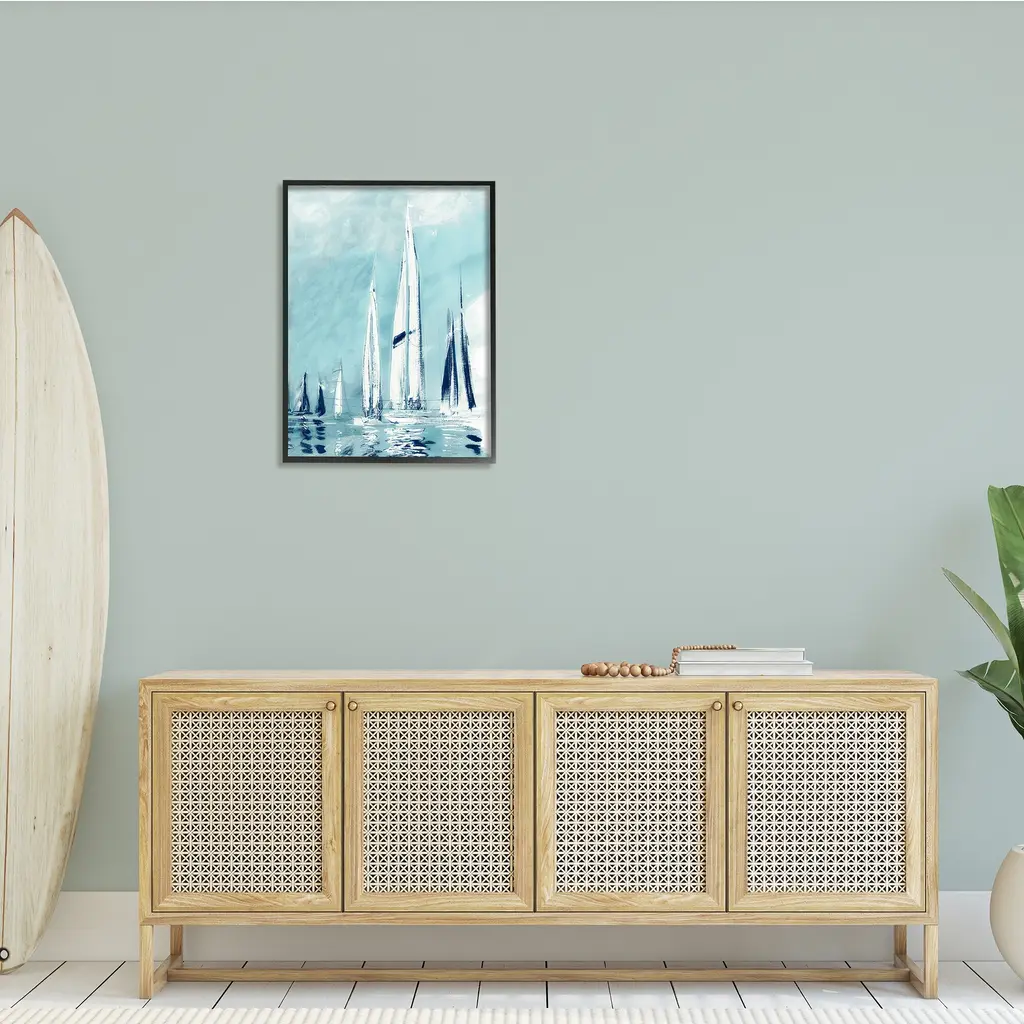 Stupell Abstract Nautical Row Of Sail Boats Fluid Blue Framed Wall Art - 24 X 30 - Black