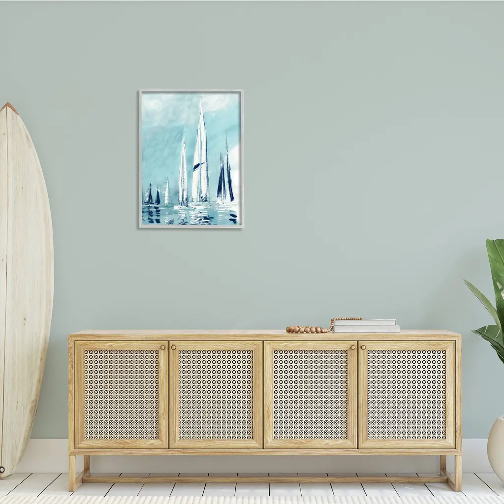 Stupell Abstract Nautical Row Of Sail Boats Fluid Blue Framed Wall Art - 24 X 30 - Grey