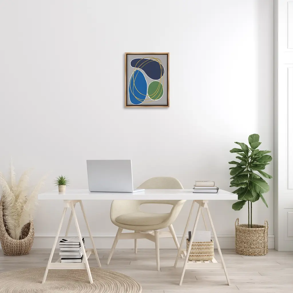 Elevate your home or office to the next level with Stupell Framed Floating Canvas Wall Art. Our premium hand-stretched canvas is mounted securely into a sturdy lightweight frame. The museum-style gap between the wrapped canvas and the box frame gives the illusion of floating artwork. Stupell Wall Art is made in the USA.Features: Dimensions: 17 x 1.7 x 21 Frame, 16 x 1.5 x 20 Canvas ArtFloating Frame Canvas Products are available in sizes 17"x21" and 25"x31". All Floating Frame Canvas Products have a 1.7" Depth.Wall Art is Ready to Hang with Hardware Free Hanging. No Installation required. For Easy Set Up Lean or Layer Artwork on Shelf or Against Wall. Artwork is Permently Fixed into the Frame.Our elevated 1.7" Thick Floating Frame is the perfect complement to our canvas style Wall Art. We use only the highest quality inks in house with industry leading printing solutions. Canvas is hand stretched over a durable wood foundation and then mounted securly into a Modern Box Frame. Made in the USA.Artwork Relates To: Abstract, Modern, Contemporary, Geometric, ShapesDesign by Regina Moore