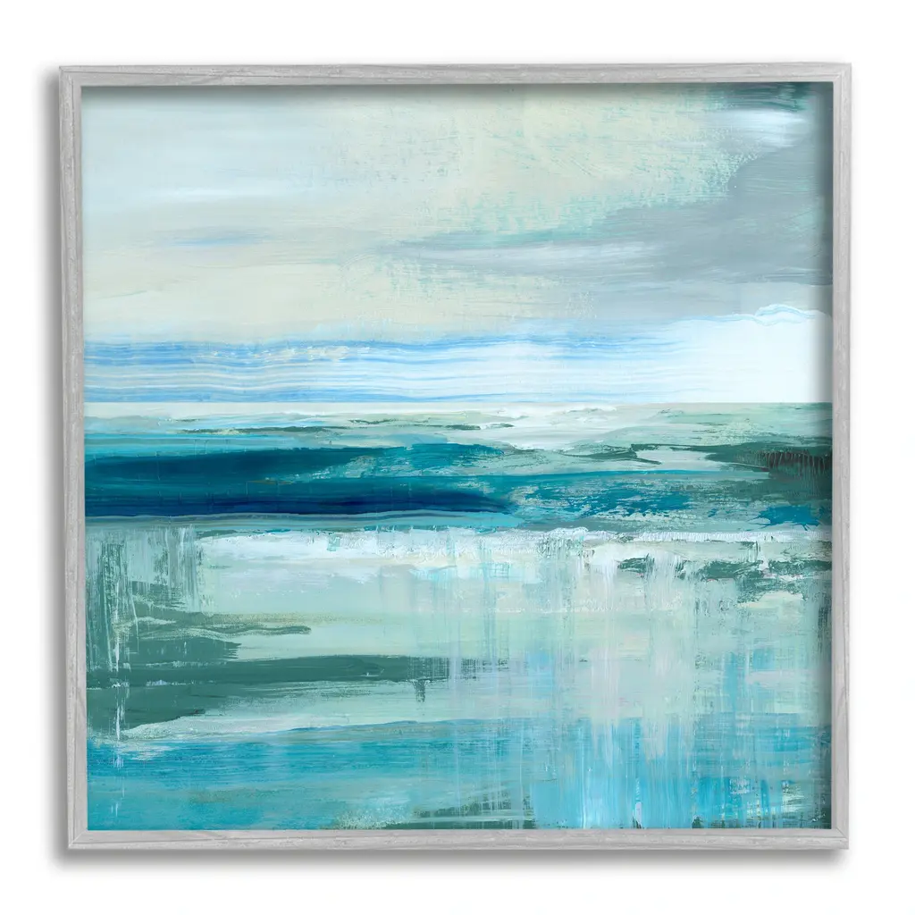 Stupell Abstract Ocean Horizon Modern Nautical Painting Blue Green Framed Wall Art - 12 X 12 - Black