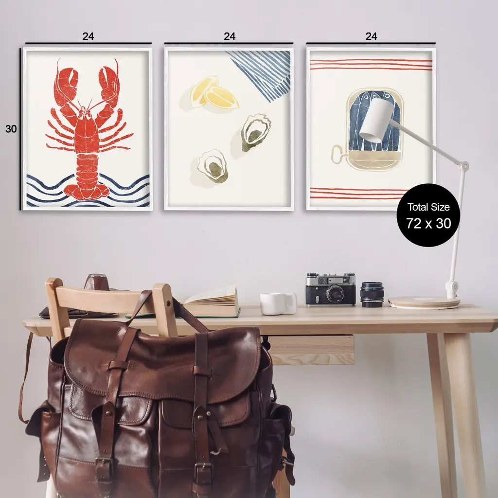 Fill any space in your home or office with our Framed Wall Art Sets. Our framed artwork is securely mounted into a 1.5-inch thick wood grain frame and ready to hang. Frames are available in three alluring styles: black, gray farmhouse and white. Stupell Wall Art is made in the USA.Features: Dimensions: 3 Piece Set, Each Panel is 11 x 1.5 x 14 FramedThree Piece Framed Giclee Sets are availabel as 11"x14", 16"x20", or 24"x30" Panels. All Framed Giclee Products have a 1.5" Depth.Wall Art is Ready to Hang with Hardware Free Hanging. No installation required. For Easy Set Up Lean or Layer Artwork on Shelf or Against Wall.Curated Wall Art Sets make it easy for you complete the theme for any room. Our giclée prints are carefully mounted on a durable MDF backing, and then perfectly finished in a 1.5 inch thick woodgrain frame. Mounted frame colors include black, gray farmhouse and white. Made In USA.Artwork Relates To: Seafood, Animal, Invertebrate, Lobster, Sea Life, Water, Ocean, Sea, Wave, Abstract, OysterDesign by Yuyu Pont