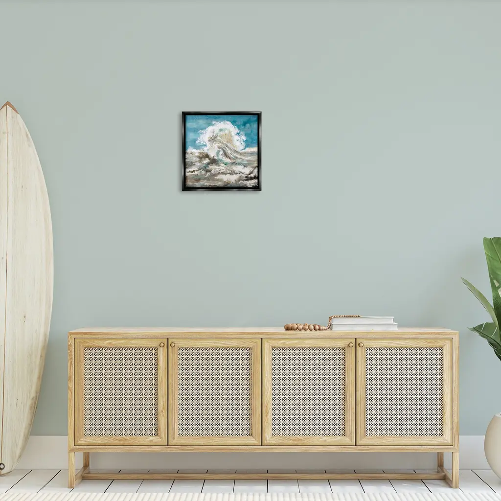 Elevate your home or office to the next level with Stupell Framed Floating Canvas Wall Art. Our premium hand-stretched canvas is mounted securely into a sturdy lightweight frame. The museum-style gap between the wrapped canvas and the box frame gives the illusion of floating artwork. Stupell Wall Art is made in the USA.Features: Dimensions: 18 x 1.7 x 18 Frame, 17 x 1.5 x 17 Canvas ArtFloating Frame Canvas Products are available in sizes 18"x18" and 25"x25". All Floating Frame Canvas Products have a 1.7" Depth.Wall Art is Ready to Hang with Hardware Free Hanging. No Installation required. For Easy Set Up Lean or Layer Artwork on Shelf or Against Wall. Artwork is Permently Fixed into the Frame.Our elevated 1.7" Thick Floating Frame is the perfect complement to our canvas style Wall Art. We use only the highest quality inks in house with industry leading printing solutions. Canvas is hand stretched over a durable wood foundation and then mounted securly into a Modern Box Frame. Made in the USA.Artwork Relates To: Abstract, Modern, Beach, Ocean, Sea, Nautical, WaveDesign by Liz Jardine