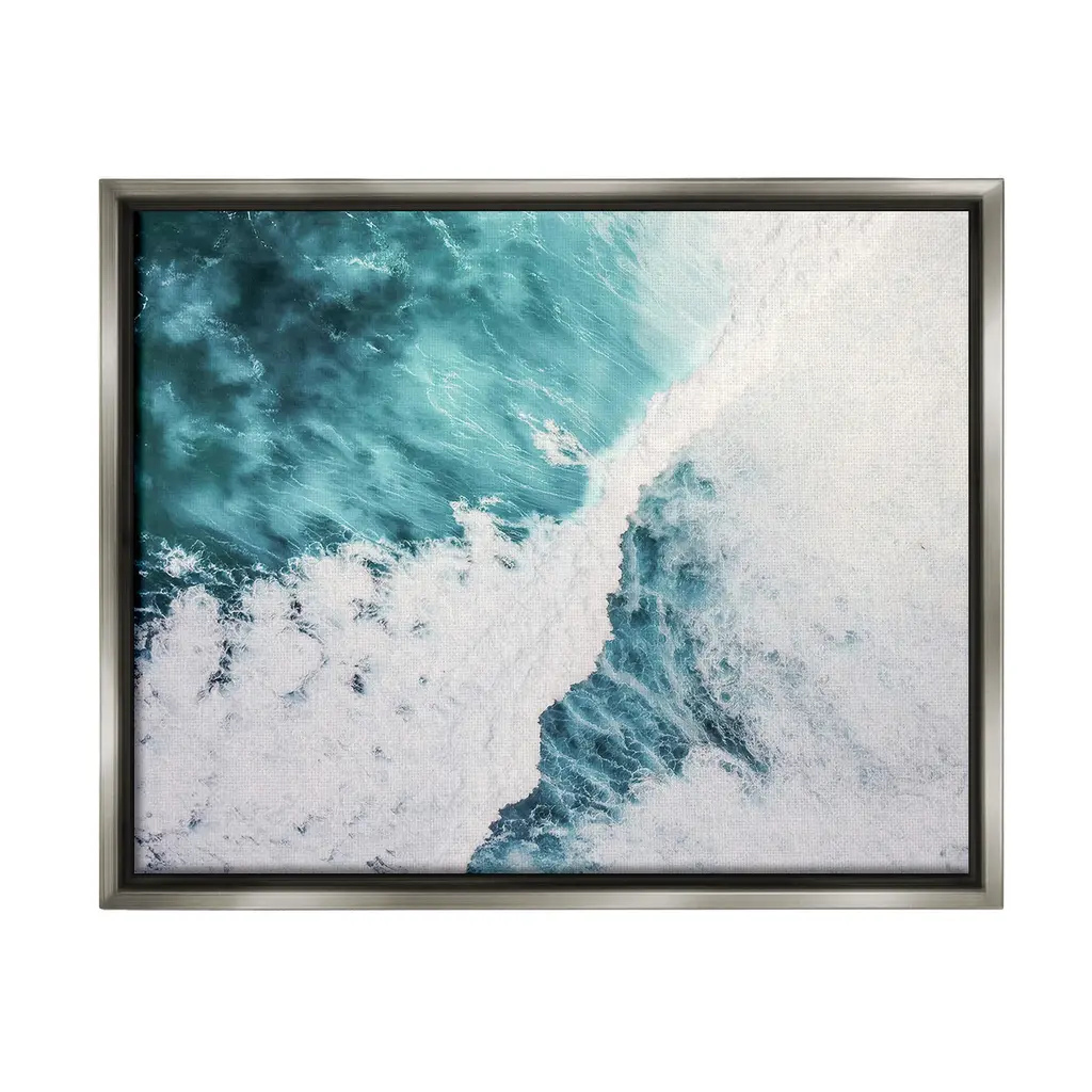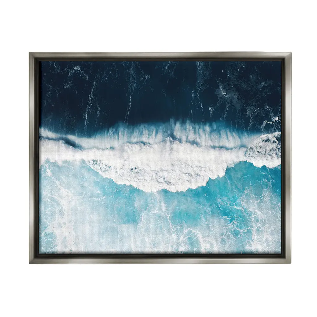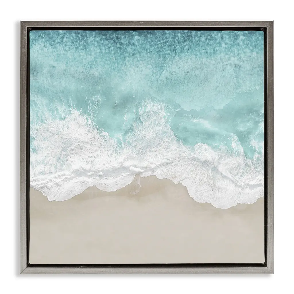 Elevate your home or office to the next level with Stupell Framed Floating Canvas Wall Art. Our premium hand-stretched canvas is mounted securely into a sturdy lightweight frame. The museum-style gap between the wrapped canvas and the box frame gives the illusion of floating artwork. Stupell Wall Art is made in the USA.Features: Dimensions: 18 x 1.7 x 18 Frame, 17 x 1.5 x 17 Canvas ArtFloating Frame Canvas Products are available in sizes 18"x18" and 25"x25". All Floating Frame Canvas Products have a 1.7" Depth.Wall Art is Ready to Hang with Hardware Free Hanging. No Installation required. For Easy Set Up Lean or Layer Artwork on Shelf or Against Wall. Artwork is Permently Fixed into the Frame.Our elevated 1.7" Thick Floating Frame is the perfect complement to our canvas style Wall Art. We use only the highest quality inks in house with industry leading printing solutions. Canvas is hand stretched over a durable wood foundation and then mounted securly into a Modern Box Frame. Made in the USA.Artwork Relates To: Abstract, Modern, Beach, Ocean, Sea, Nautical, WaveDesign by Liz Jardine