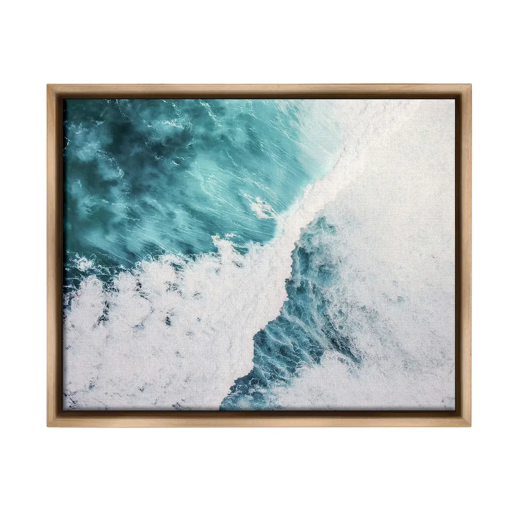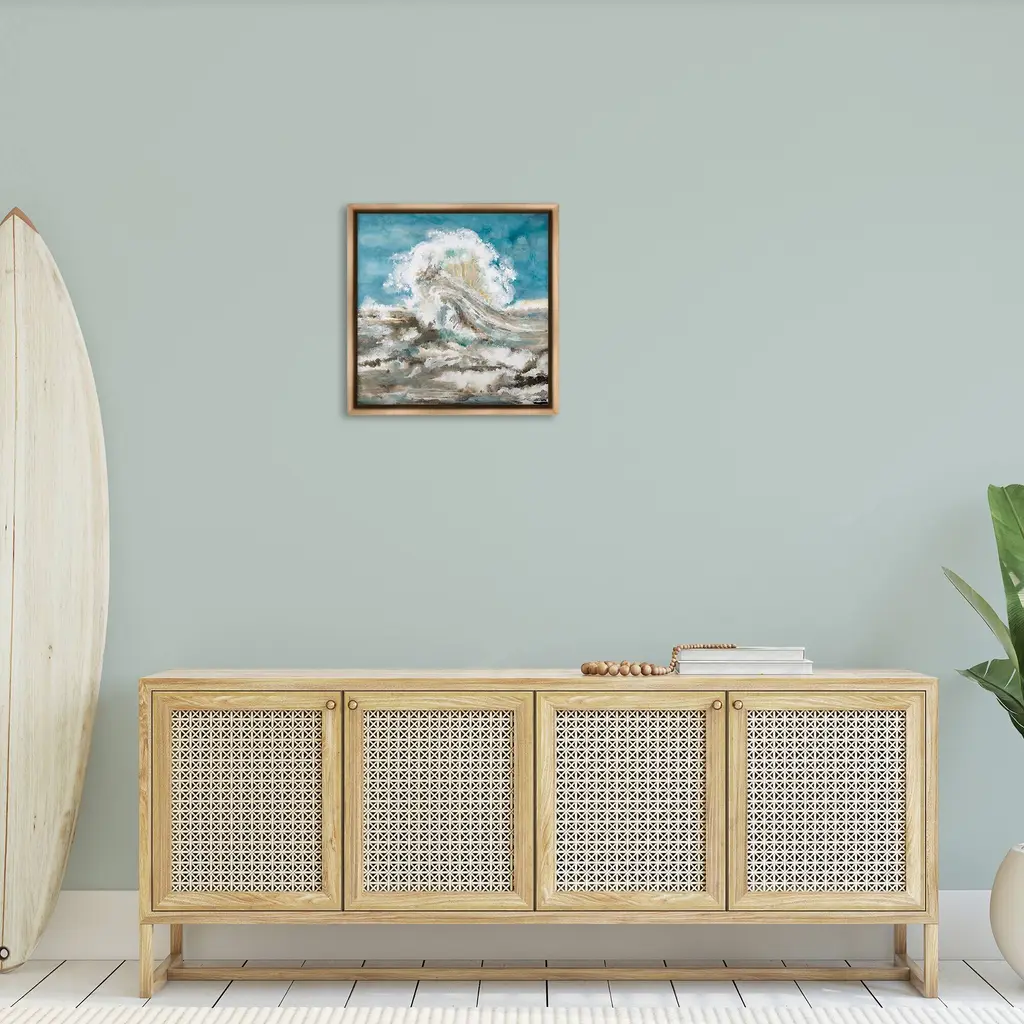 Elevate your home or office to the next level with Stupell Framed Floating Canvas Wall Art. Our premium hand-stretched canvas is mounted securely into a sturdy lightweight frame. The museum-style gap between the wrapped canvas and the box frame gives the illusion of floating artwork. Stupell Wall Art is made in the USA.Features: Dimensions: 18 x 1.7 x 18 Frame, 17 x 1.5 x 17 Canvas ArtFloating Frame Canvas Products are available in sizes 18"x18" and 25"x25". All Floating Frame Canvas Products have a 1.7" Depth.Wall Art is Ready to Hang with Hardware Free Hanging. No Installation required. For Easy Set Up Lean or Layer Artwork on Shelf or Against Wall. Artwork is Permently Fixed into the Frame.Our elevated 1.7" Thick Floating Frame is the perfect complement to our canvas style Wall Art. We use only the highest quality inks in house with industry leading printing solutions. Canvas is hand stretched over a durable wood foundation and then mounted securly into a Modern Box Frame. Made in the USA.Artwork Relates To: Abstract, Modern, Beach, Ocean, Sea, Nautical, WaveDesign by Liz Jardine