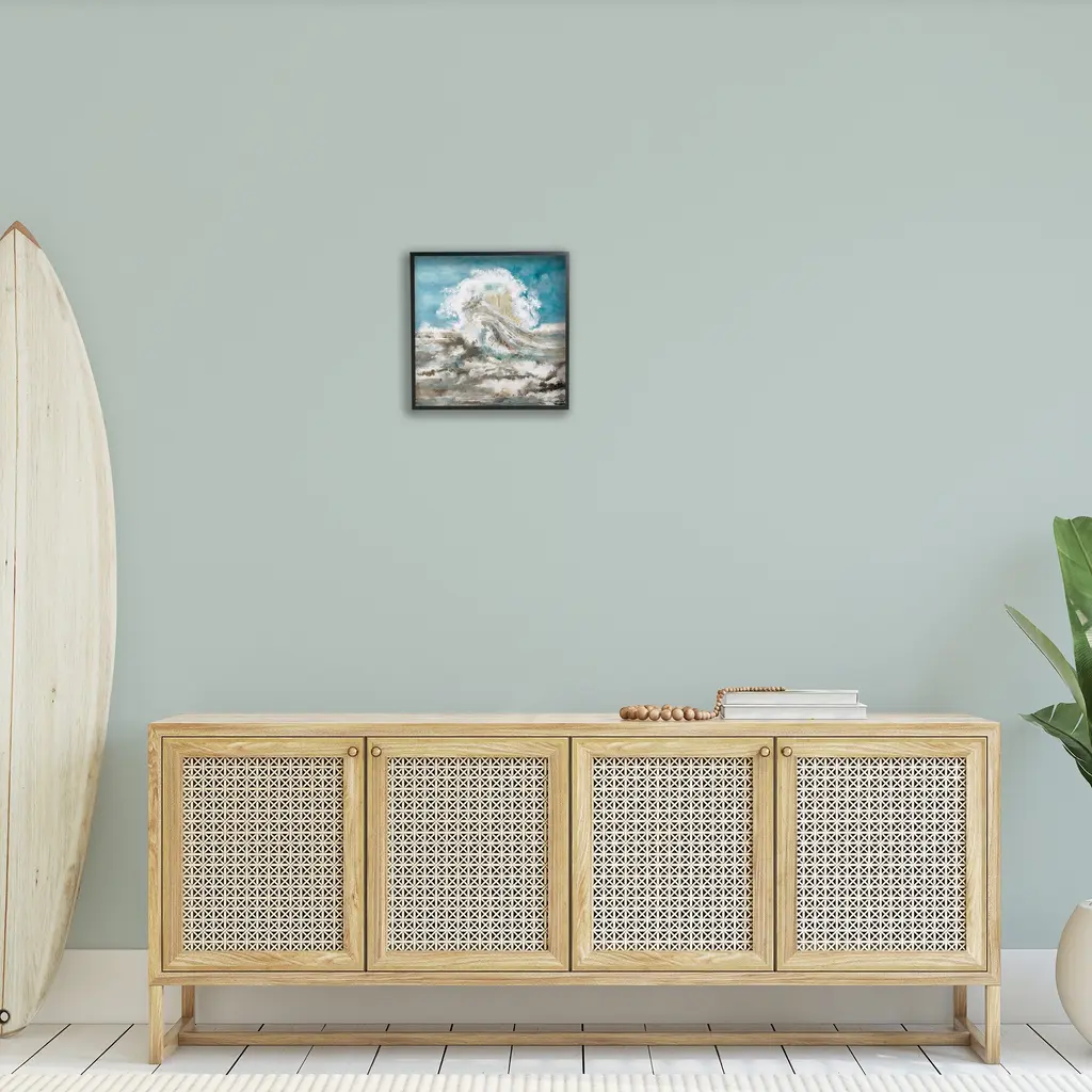 Add dimension to any room with our textured Framed Giclee Artwork. Our framed artwork is securely mounted into a 1.5-inch thick wood grain frame and ready to hang. Frames are available in three alluring styles: black, gray farmhouse and white. In addition, you should check out our oversized options if you want a statement piece. Stupell Wall Art is made in the USA.Features: Dimensions: 12 x 1.5 x 12 FramedFramed Giclee Product Sizes Include 12"x12", 17"x17", and 24"x24". Framed Giclee Products have a 1.5" Depth. Wall Art is Ready to Hang with Hardware Free Hanging. No installation required. For Easy Set Up Lean or Layer Artwork on Shelf or Against Wall.Our giclée prints are carefully mounted on a durable MDF backing, and then perfectly finished in a 1.5 inch thick woodgrain frame. Mounted frame colors include black, gray farmhouse and white. Made In USA.Artwork Relates To: Abstract, Modern, Beach, Ocean, Sea, Nautical, WaveDesign by Liz Jardine