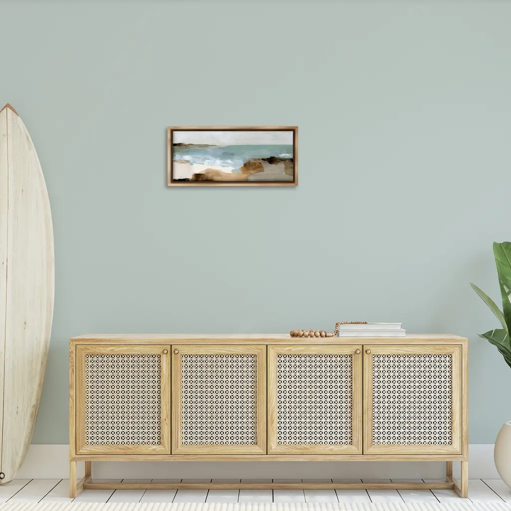 Elevate your home or office to the next level with Stupell Framed Floating Canvas Wall Art. Our premium hand-stretched canvas is mounted securely into a sturdy lightweight frame. The museum-style gap between the wrapped canvas and the box frame gives the illusion of floating artwork. Stupell Wall Art is made in the USA.Features: Dimensions: 25 x 1.7 x 11 Frame, 24 x 1.5 x 10 Canvas ArtFloating Frame Canvas Products are available in sizes 25"x11" and 31"x14". All Floating Frame Canvas Products have a 1.7" Depth.Wall Art is Ready to Hang with Hardware Free Hanging. No Installation required. For Easy Set Up Lean or Layer Artwork on Shelf or Against Wall. Artwork is Permently Fixed into the Frame.Our elevated 1.7" Thick Floating Frame is the perfect complement to our canvas style Wall Art. We use only the highest quality inks in house with industry leading printing solutions. Canvas is hand stretched over a durable wood foundation and then mounted securly into a Modern Box Frame. Made in the USA.Artwork Relates To: Abstract, Landscape, Beach, Shore, OceanDesign by Victoria Barnes