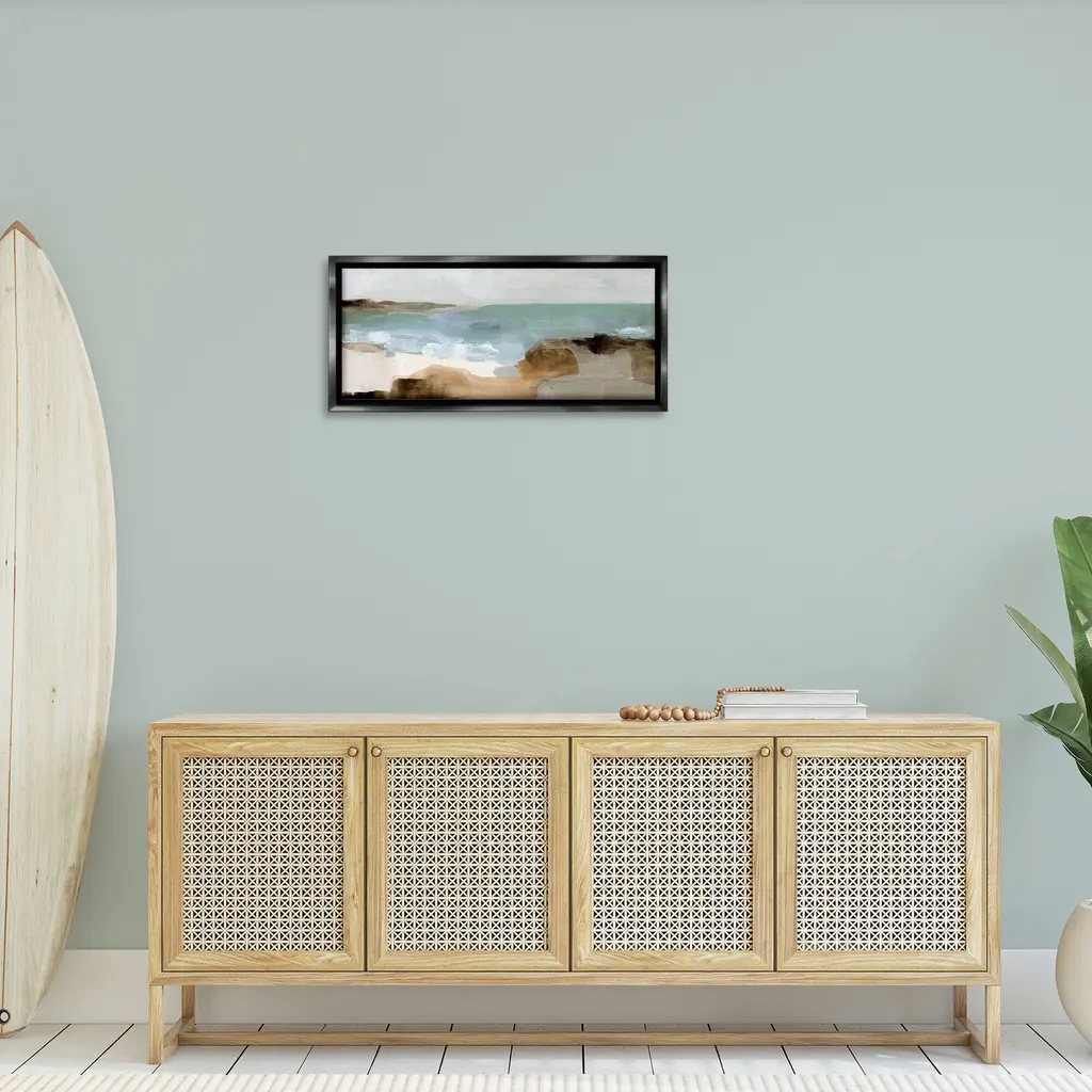 Elevate your home or office to the next level with Stupell Framed Floating Canvas Wall Art. Our premium hand-stretched canvas is mounted securely into a sturdy lightweight frame. The museum-style gap between the wrapped canvas and the box frame gives the illusion of floating artwork. Stupell Wall Art is made in the USA.Features: Dimensions: 25 x 1.7 x 11 Frame, 24 x 1.5 x 10 Canvas ArtFloating Frame Canvas Products are available in sizes 25"x11" and 31"x14". All Floating Frame Canvas Products have a 1.7" Depth.Wall Art is Ready to Hang with Hardware Free Hanging. No Installation required. For Easy Set Up Lean or Layer Artwork on Shelf or Against Wall. Artwork is Permently Fixed into the Frame.Our elevated 1.7" Thick Floating Frame is the perfect complement to our canvas style Wall Art. We use only the highest quality inks in house with industry leading printing solutions. Canvas is hand stretched over a durable wood foundation and then mounted securly into a Modern Box Frame. Made in the USA.Artwork Relates To: Abstract, Landscape, Beach, Shore, OceanDesign by Victoria Barnes