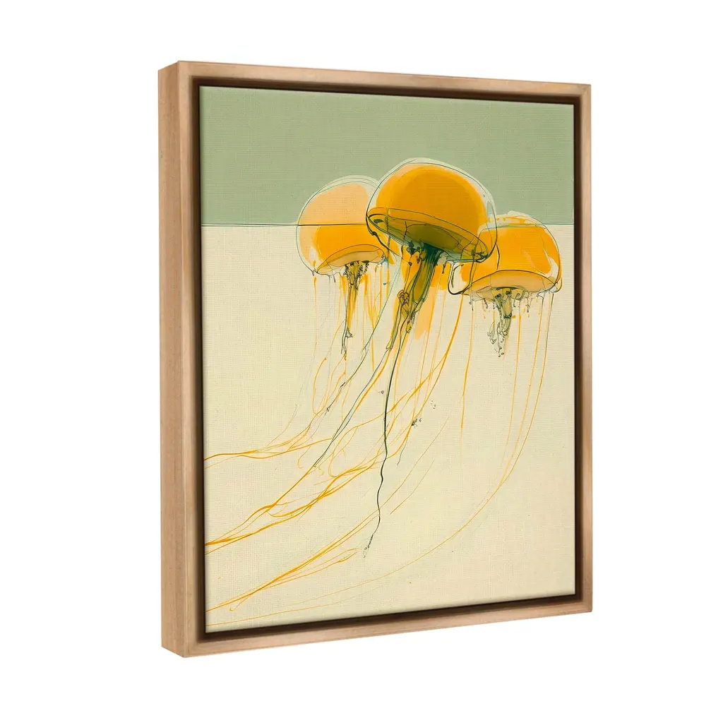 Elevate your home or office to the next level with Stupell Framed Floating Canvas Wall Art. Our premium hand-stretched canvas is mounted securely into a sturdy lightweight frame. The museum-style gap between the wrapped canvas and the box frame gives the illusion of floating artwork. Stupell Wall Art is made in the USA.Features: Dimensions: 17 x 1.7 x 21 Frame, 16 x 1.5 x 20 Canvas ArtFloating Frame Canvas Products are available in sizes 17"x21" and 25"x31". All Floating Frame Canvas Products have a 1.7" Depth.Wall Art is Ready to Hang with Hardware Free Hanging. No Installation required. For Easy Set Up Lean or Layer Artwork on Shelf or Against Wall. Artwork is Permently Fixed into the Frame.Our elevated 1.7" Thick Floating Frame is the perfect complement to our canvas style Wall Art. We use only the highest quality inks in house with industry leading printing solutions. Canvas is hand stretched over a durable wood foundation and then mounted securly into a Modern Box Frame. Made in the USA.Artwork Relates To: Animal, Sea Life, Invertebrate, Jellyfish, Nautical, Maritime, Abstract, ModernDesign by Walker Noble