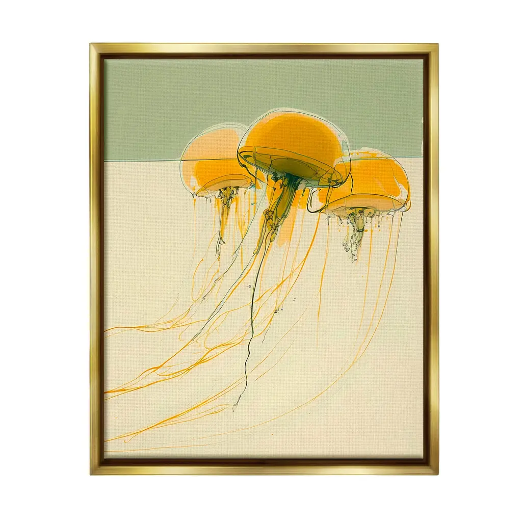 Elevate your home or office to the next level with Stupell Framed Floating Canvas Wall Art. Our premium hand-stretched canvas is mounted securely into a sturdy lightweight frame. The museum-style gap between the wrapped canvas and the box frame gives the illusion of floating artwork. Stupell Wall Art is made in the USA.Features: Dimensions: 17 x 1.7 x 21 Frame, 16 x 1.5 x 20 Canvas ArtFloating Frame Canvas Products are available in sizes 17"x21" and 25"x31". All Floating Frame Canvas Products have a 1.7" Depth.Wall Art is Ready to Hang with Hardware Free Hanging. No Installation required. For Easy Set Up Lean or Layer Artwork on Shelf or Against Wall. Artwork is Permently Fixed into the Frame.Our elevated 1.7" Thick Floating Frame is the perfect complement to our canvas style Wall Art. We use only the highest quality inks in house with industry leading printing solutions. Canvas is hand stretched over a durable wood foundation and then mounted securly into a Modern Box Frame. Made in the USA.Artwork Relates To: Animal, Sea Life, Invertebrate, Jellyfish, Nautical, Maritime, Abstract, ModernDesign by Walker Noble