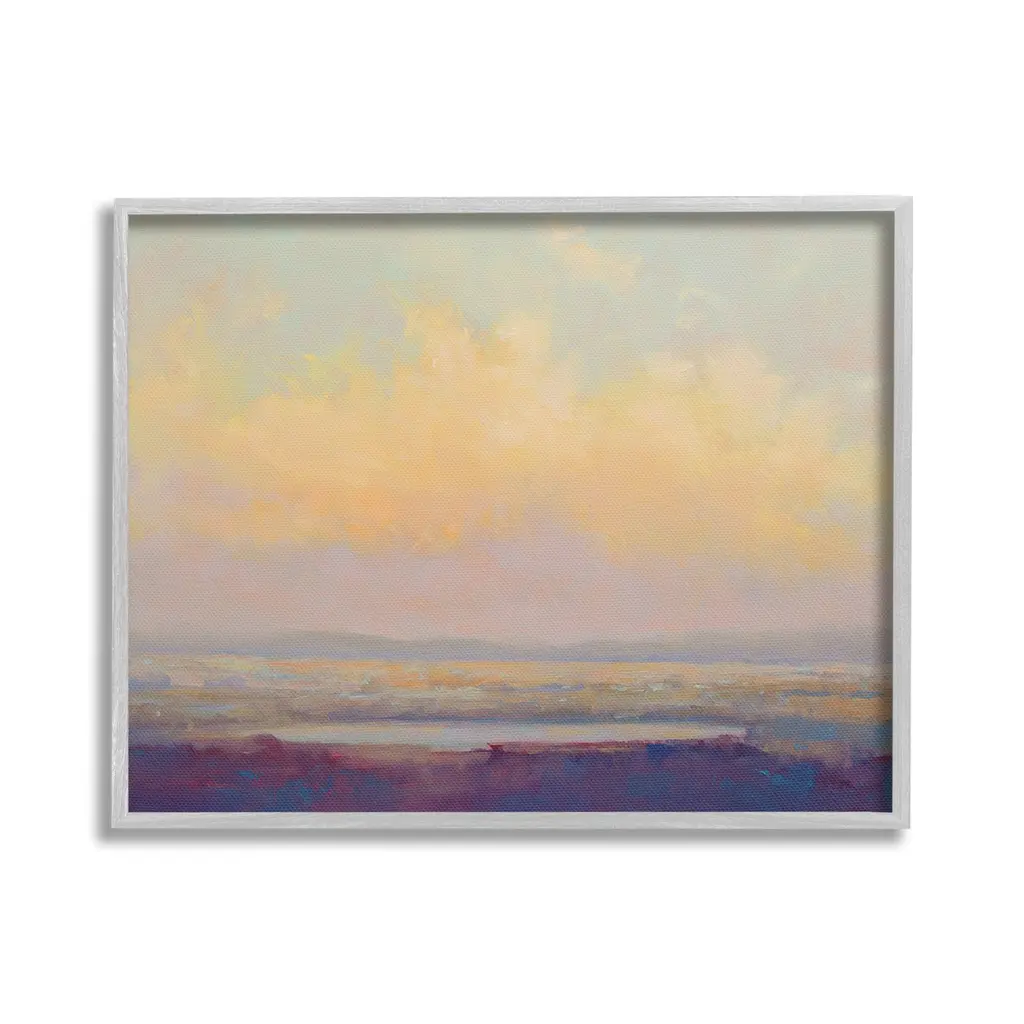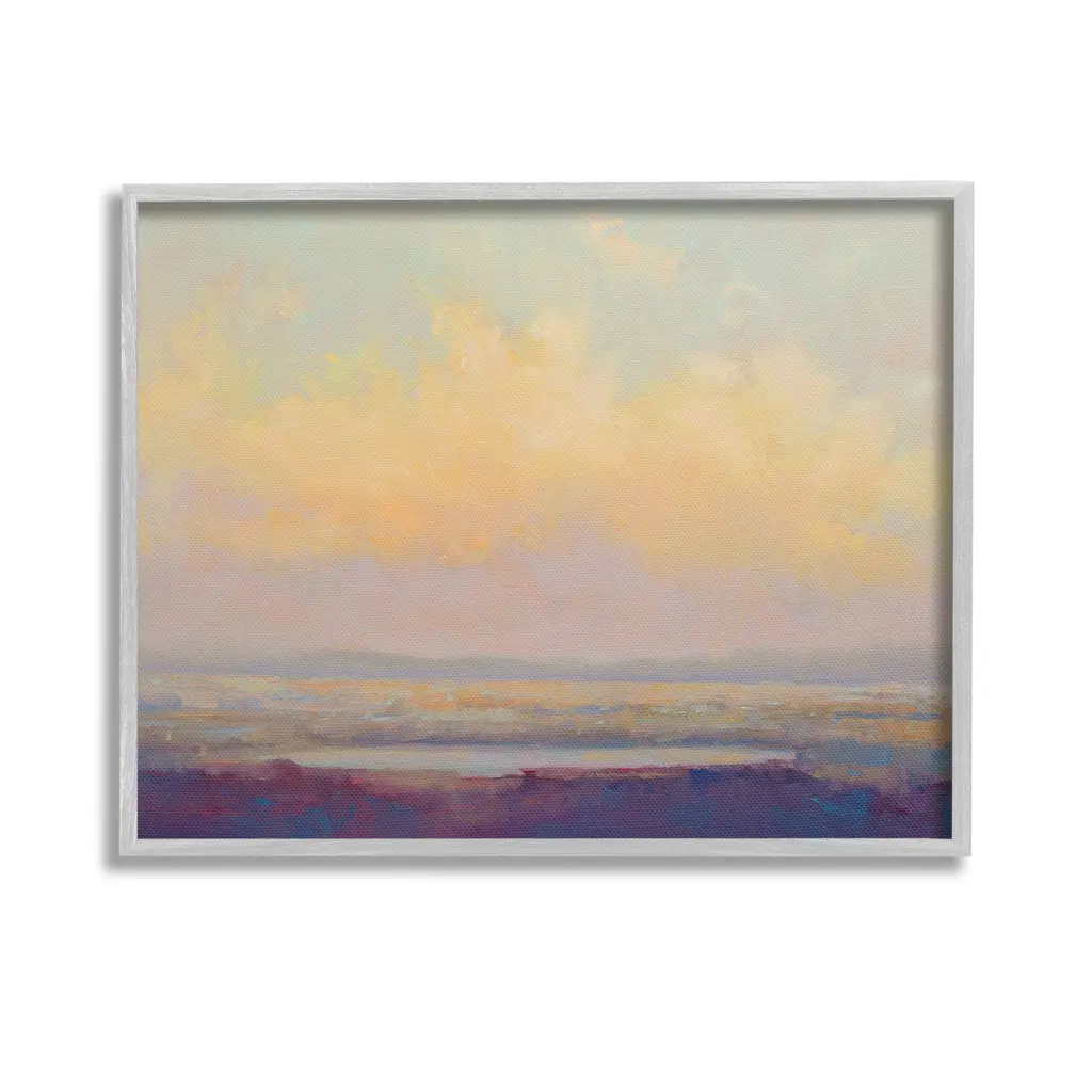 Elevate your home or office to the next level with Stupell Framed Floating Canvas Wall Art. Our premium hand-stretched canvas is mounted securely into a sturdy lightweight frame. The museum-style gap between the wrapped canvas and the box frame gives the illusion of floating artwork. Stupell Wall Art is made in the USA.Features: Dimensions: 21 x 1.7 x 17 Frame, 20 x 1.5 x 16 Canvas ArtFloating Frame Canvas Products are available in sizes 21"x17" and 31"x25". All Floating Frame Canvas Products have a 1.7" Depth.Wall Art is Ready to Hang with Hardware Free Hanging. No Installation required. For Easy Set Up Lean or Layer Artwork on Shelf or Against Wall. Artwork is Permently Fixed into the Frame.Our elevated 1.7" Thick Floating Frame is the perfect complement to our canvas style Wall Art. We use only the highest quality inks in house with industry leading printing solutions. Canvas is hand stretched over a durable wood foundation and then mounted securly into a Modern Box Frame. Made in the USA.Artwork Relates To: Painting, Nature, Sky, Horizon, Sunrise, Sunset, Landscape, Clouds, AbstractDesign by William McCarthy