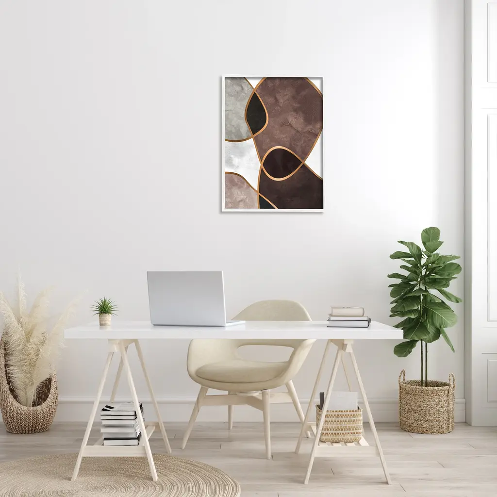 Stupell Abstract Organic Layered Shapes Brown Blush Contrasting Tones Framed Wall Art - 24 X 30 - White