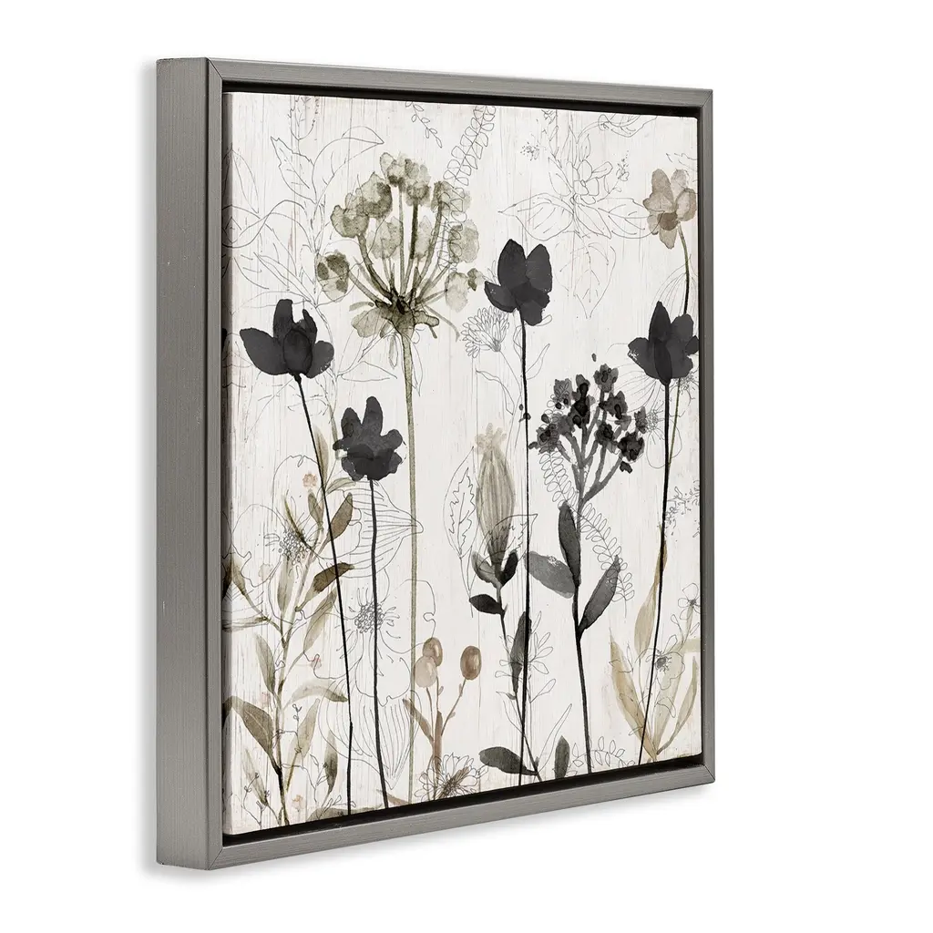 Stupell Abstract Overlapping Flower Sprigs Framed Floater Canvas Wall Art Design By Livi Finn - 18 X 18 - Grey