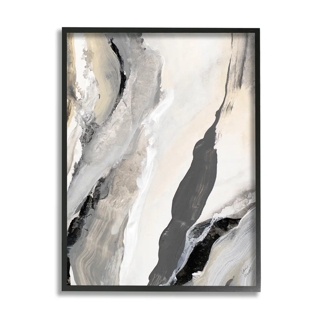 Stupell Abstract Paint Strokes Fluid Beige Movement Framed Giclee Texturized Art By Lanie Loreth - 24 X 30 - Grey