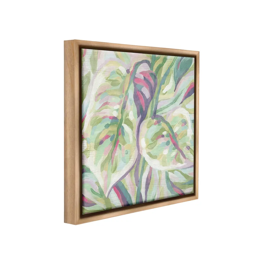 Elevate your home or office to the next level with Stupell Framed Floating Canvas Wall Art. Our premium hand-stretched canvas is mounted securely into a sturdy lightweight frame. The museum-style gap between the wrapped canvas and the box frame gives the illusion of floating artwork. Stupell Wall Art is made in the USA.Features: Dimensions: 18 x 1.7 x 18 Frame, 17 x 1.5 x 17 Canvas ArtFloating Frame Canvas Products are available in sizes 18"x18" and 25"x25". All Floating Frame Canvas Products have a 1.7" Depth.Wall Art is Ready to Hang with Hardware Free Hanging. No Installation required. For Easy Set Up Lean or Layer Artwork on Shelf or Against Wall. Artwork is Permently Fixed into the Frame.Our elevated 1.7" Thick Floating Frame is the perfect complement to our canvas style Wall Art. We use only the highest quality inks in house with industry leading printing solutions. Canvas is hand stretched over a durable wood foundation and then mounted securly into a Modern Box Frame. Made in the USA.Artwork Relates To: Modern, Pattern, Painting, Floral, Abstract, Plant, Botanical, Leaf, PastelDesign by June Erica Vess