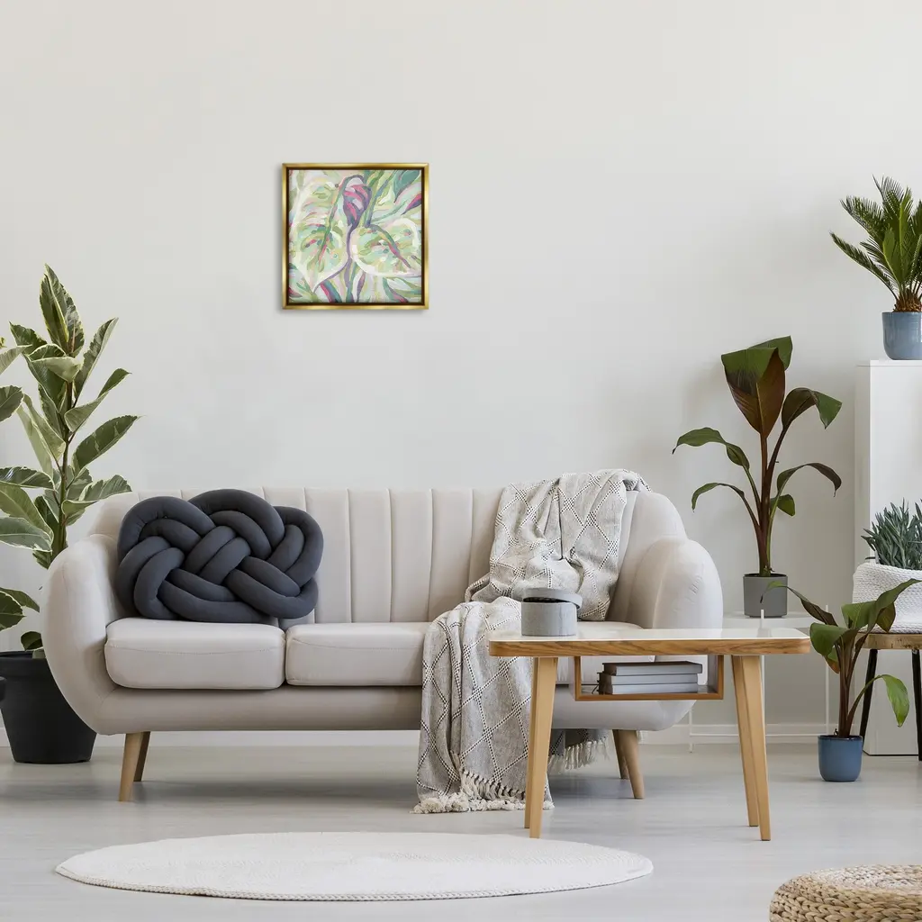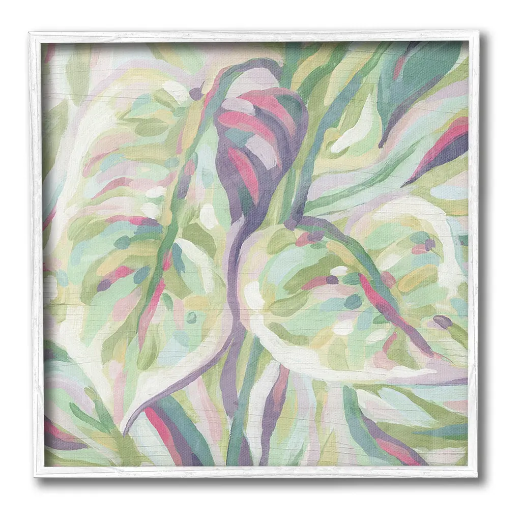 Elevate your home or office to the next level with Stupell Framed Floating Canvas Wall Art. Our premium hand-stretched canvas is mounted securely into a sturdy lightweight frame. The museum-style gap between the wrapped canvas and the box frame gives the illusion of floating artwork. Stupell Wall Art is made in the USA.Features: Dimensions: 18 x 1.7 x 18 Frame, 17 x 1.5 x 17 Canvas ArtFloating Frame Canvas Products are available in sizes 18"x18" and 25"x25". All Floating Frame Canvas Products have a 1.7" Depth.Wall Art is Ready to Hang with Hardware Free Hanging. No Installation required. For Easy Set Up Lean or Layer Artwork on Shelf or Against Wall. Artwork is Permently Fixed into the Frame.Our elevated 1.7" Thick Floating Frame is the perfect complement to our canvas style Wall Art. We use only the highest quality inks in house with industry leading printing solutions. Canvas is hand stretched over a durable wood foundation and then mounted securly into a Modern Box Frame. Made in the USA.Artwork Relates To: Modern, Pattern, Painting, Floral, Abstract, Plant, Botanical, Leaf, PastelDesign by June Erica Vess