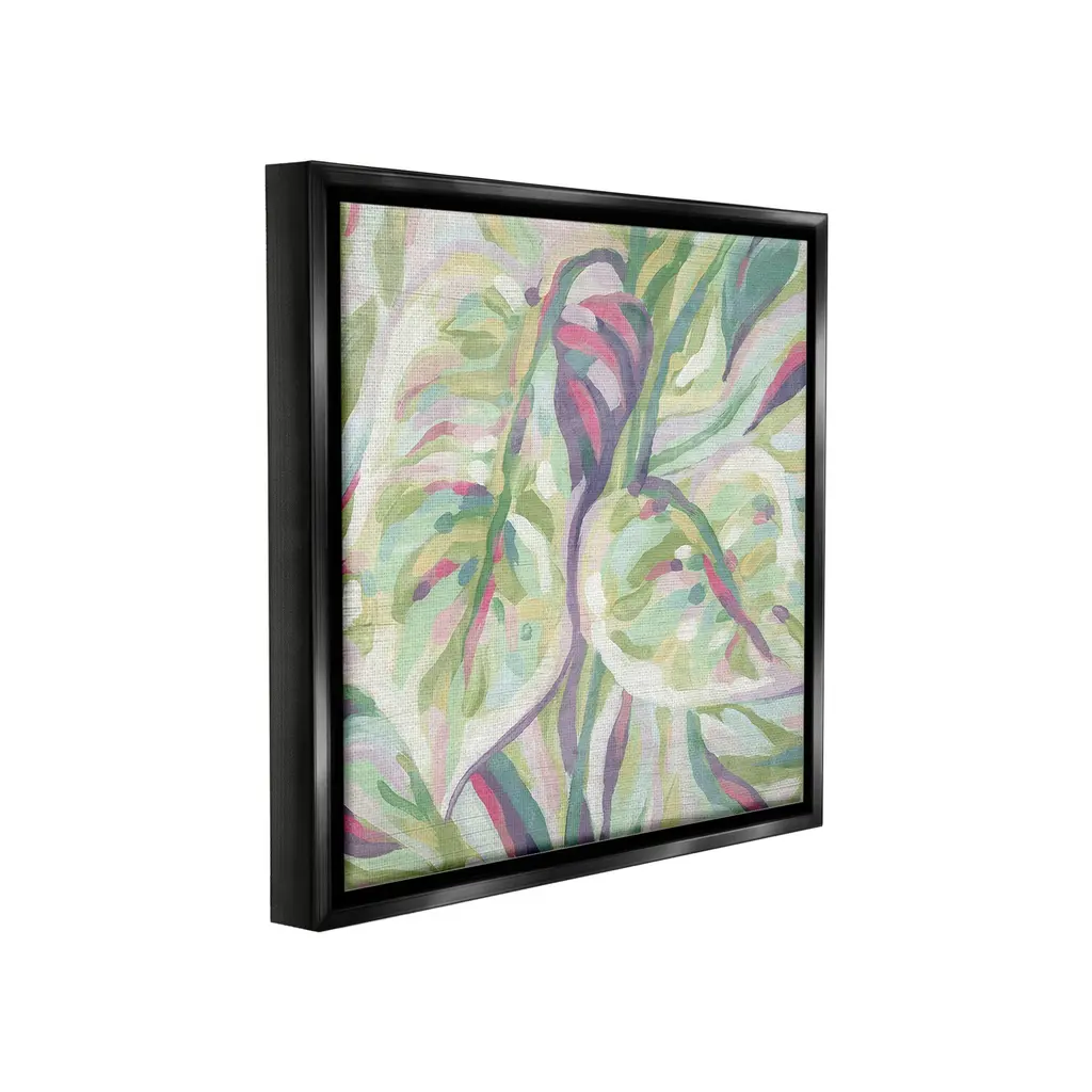 Elevate your home or office to the next level with Stupell Framed Floating Canvas Wall Art. Our premium hand-stretched canvas is mounted securely into a sturdy lightweight frame. The museum-style gap between the wrapped canvas and the box frame gives the illusion of floating artwork. Stupell Wall Art is made in the USA.Features: Dimensions: 18 x 1.7 x 18 Frame, 17 x 1.5 x 17 Canvas ArtFloating Frame Canvas Products are available in sizes 18"x18" and 25"x25". All Floating Frame Canvas Products have a 1.7" Depth.Wall Art is Ready to Hang with Hardware Free Hanging. No Installation required. For Easy Set Up Lean or Layer Artwork on Shelf or Against Wall. Artwork is Permently Fixed into the Frame.Our elevated 1.7" Thick Floating Frame is the perfect complement to our canvas style Wall Art. We use only the highest quality inks in house with industry leading printing solutions. Canvas is hand stretched over a durable wood foundation and then mounted securly into a Modern Box Frame. Made in the USA.Artwork Relates To: Modern, Pattern, Painting, Floral, Abstract, Plant, Botanical, Leaf, PastelDesign by June Erica Vess
