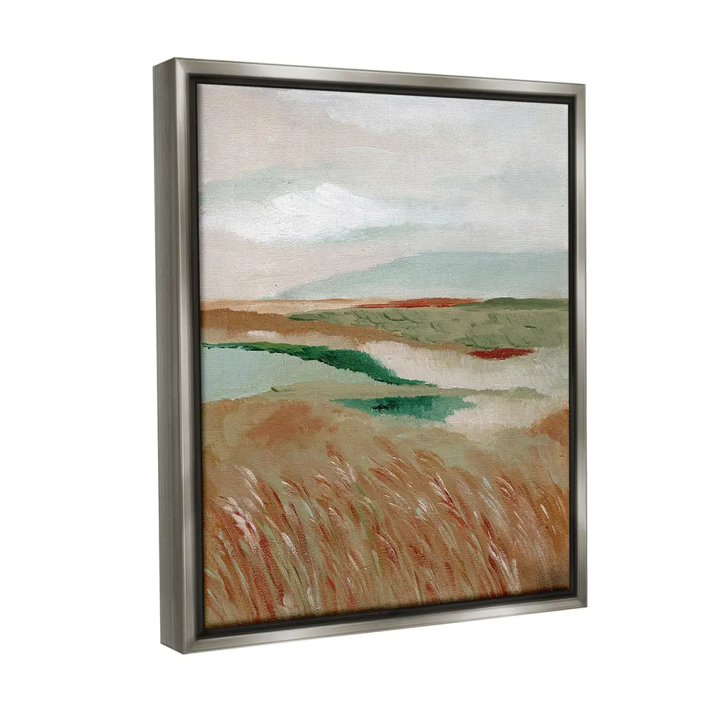 Elevate your home or office to the next level with Stupell Framed Floating Canvas Wall Art. Our premium hand-stretched canvas is mounted securely into a sturdy lightweight frame. The museum-style gap between the wrapped canvas and the box frame gives the illusion of floating artwork. Stupell Wall Art is made in the USA.Features: Dimensions: 17 x 1.7 x 21 Frame, 16 x 1.5 x 20 Canvas ArtFloating Frame Canvas Products are available in sizes 17"x21" and 25"x31". All Floating Frame Canvas Products have a 1.7" Depth.Wall Art is Ready to Hang with Hardware Free Hanging. No Installation required. For Easy Set Up Lean or Layer Artwork on Shelf or Against Wall. Artwork is Permently Fixed into the Frame.Our elevated 1.7" Thick Floating Frame is the perfect complement to our canvas style Wall Art. We use only the highest quality inks in house with industry leading printing solutions. Canvas is hand stretched over a durable wood foundation and then mounted securly into a Modern Box Frame. Made in the USA.Artwork Relates To: Painting, Nature, Field, Grassland, Landscape, Country, Farm, Grass, PastureDesign by Nikita Jariwala