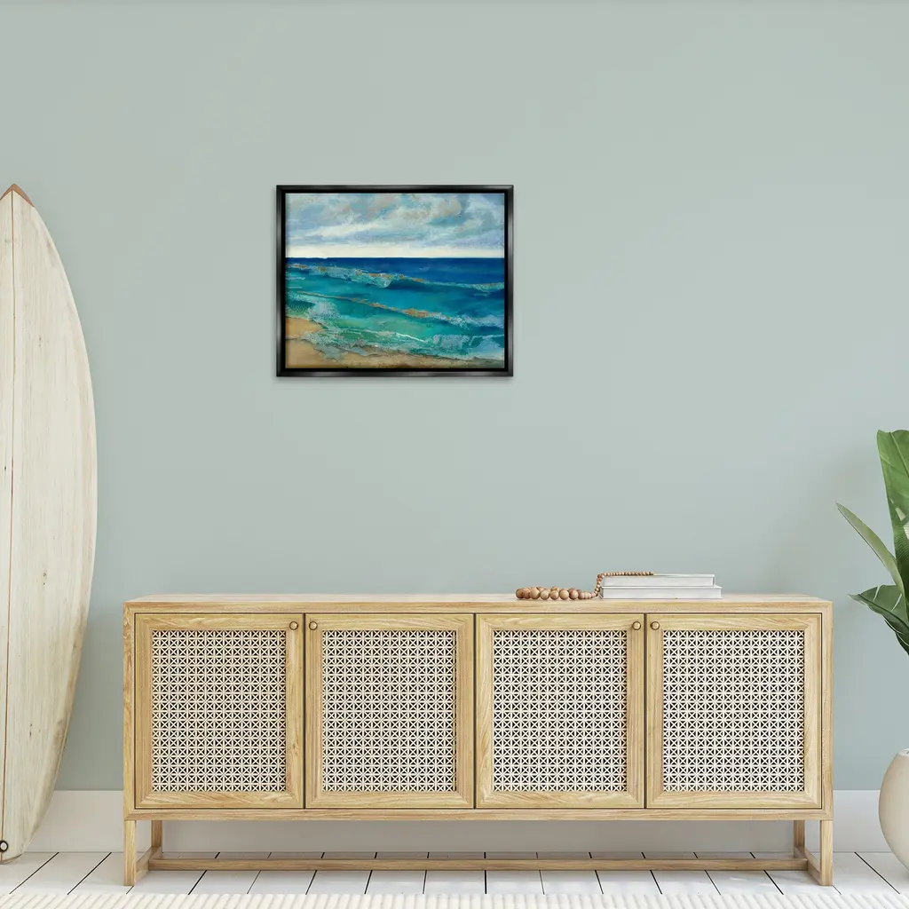 Elevate your home or office to the next level with Stupell Framed Floating Canvas Wall Art. Our premium hand-stretched canvas is mounted securely into a sturdy lightweight frame. The museum-style gap between the wrapped canvas and the box frame gives the illusion of floating artwork. Stupell Wall Art is made in the USA.Features: Dimensions: 21 x 1.7 x 17 Frame, 20 x 1.5 x 16 Canvas ArtFloating Frame Canvas Products are available in sizes 21"x17" and 31"x25". All Floating Frame Canvas Products have a 1.7" Depth.Wall Art is Ready to Hang with Hardware Free Hanging. No Installation required. For Easy Set Up Lean or Layer Artwork on Shelf or Against Wall. Artwork is Permently Fixed into the Frame.Our elevated 1.7" Thick Floating Frame is the perfect complement to our canvas style Wall Art. We use only the highest quality inks in house with industry leading printing solutions. Canvas is hand stretched over a durable wood foundation and then mounted securly into a Modern Box Frame. Made in the USA.Artwork Relates To: Nature, Water, Sea, Painting, Shoreline, Coast, Beach, Scenery, Landscape, Sea Waves, Palm Tree, Abstract, ModernDesign by Scott Brems