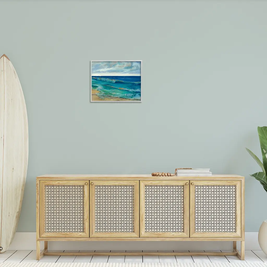 Add dimension to any room with our textured Framed Giclee Artwork. Our framed artwork is securely mounted into a 1.5-inch thick wood grain frame and ready to hang. Frames are available in three alluring styles: black, gray farmhouse and white. In addition, you should check out our oversized options if you want a statement piece. Stupell Wall Art is made in the USA.Features: Dimensions: 14 x 1.5 x 11 FramedFramed Giclee Products are available in the sizes 14"x11", 20"x16" or 30"x24". All Framed Giclee Products have a 1.5" Depth. Wall Art is Ready to Hang with Hardware Free Hanging. No installation required. For Easy Set Up Lean or Layer Artwork on Shelf or Against Wall.Our giclée prints are carefully mounted on a durable MDF backing, and then perfectly finished in a 1.5 inch thick woodgrain frame. Mounted frame colors include black, gray farmhouse and white. Made In USA.Artwork Relates To: Nature, Water, Sea, Painting, Shoreline, Coast, Beach, Scenery, Landscape, Sea Waves, Palm Tree, Abstract, ModernDesign by Scott Brems