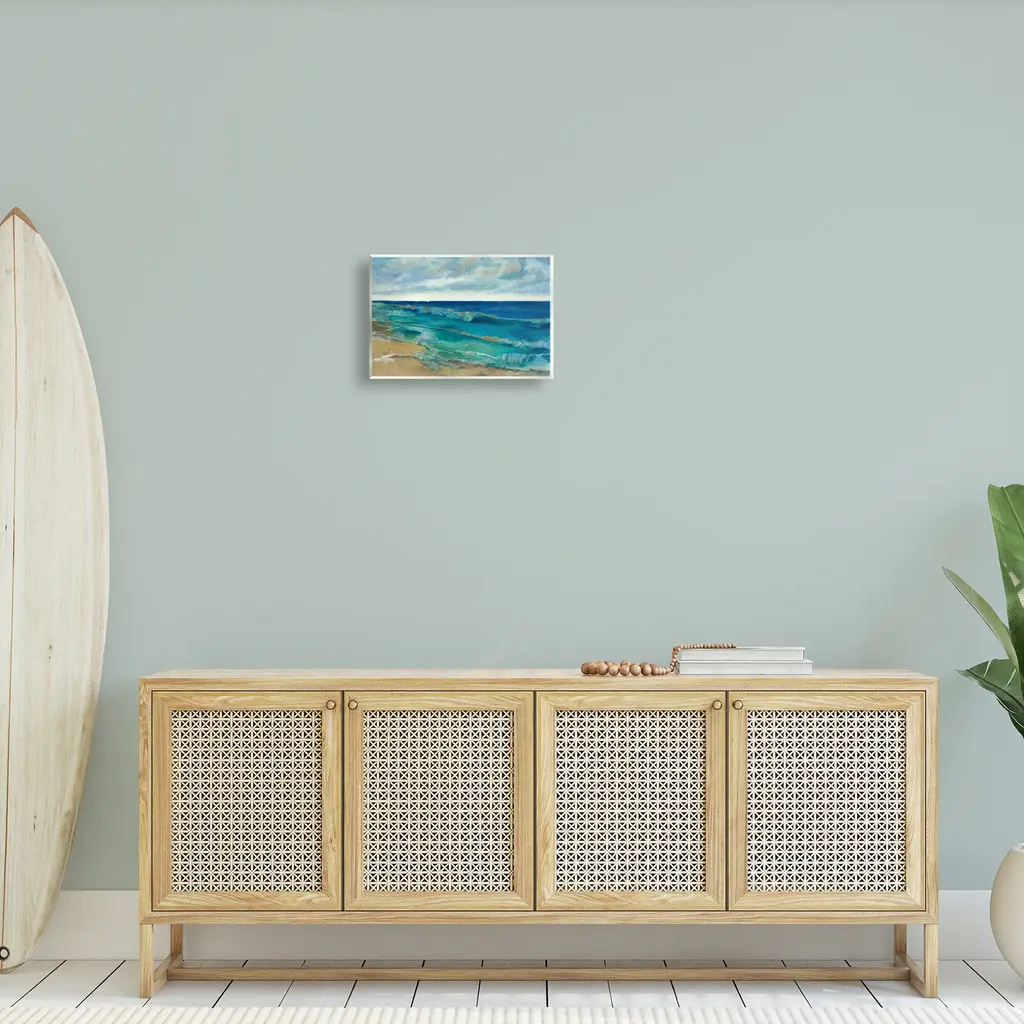 Our wall plaques start as high-quality lithograph prints mounted on durable 0.5-inch thick MDF wood. Each piece is hand finished and comes with a fresh layer of white foil on the sides to give it a crisp, clean look. Plaques arrive ready to hang without installation and come with removable plastic corners to keep them from damage in transit. Stupell Wall Art is made in the USA.Features: Dimensions: 15 x 0.5 x 10 InchesWall Plaque Product Sizes Include 15"x10" and 19"x13". All wall plaque products have a 0.5" Depth. Wall Art is Ready to Hang with Hardware Free Hanging. No installation required. For Easy Set Up Lean or Layer Artwork on Shelf or Against Wall.All of our wall plaques start off as high quality lithograph prints that are then mounted on durable 0.5 inch thick MDF wood. Each piece is hand finished and comes with a fresh layer of foil on the sides to give it a crisp clean look. Made In USA.Artwork Relates To: Nature, Water, Sea, Painting, Shoreline, Coast, Beach, Scenery, Landscape, Sea Waves, Palm Tree, Abstract, ModernDesign by Scott Brems