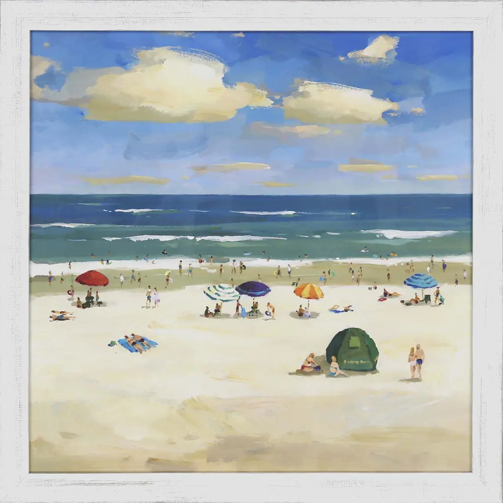 Our wall plaques start as high-quality lithograph prints mounted on durable 0.5-inch thick MDF wood. Each piece is hand finished and comes with a fresh layer of white foil on the sides to give it a crisp, clean look. Plaques arrive ready to hang without installation and come with removable plastic corners to keep them from damage in transit. Wall Art is made in the USA.Features: Dimensions: 15 x 0.5 x 10 InchesWall Plaque Sizes Include Standard: 15 x 0.5 x 10 Oversized: 19 x 0.5 x 13Wall Art is Ready to Hang with Hardware Free Hanging. No installation required. For Easy Set Up Lean or Layer Artwork on Shelf or Against Wall.All of our wall plaques start off as high quality lithograph prints that are then mounted on durable 0.5 inch thick MDF wood. Each piece is hand finished and comes with a fresh layer of foil on the sides to give it a crisp clean look. Made In USA.Artwork Relates To: Painting, Person, Nature, Sea, Water, Beach, Coast, Shoreline, Canopy, Umbrella, ShoreDesign by Ziwei Li