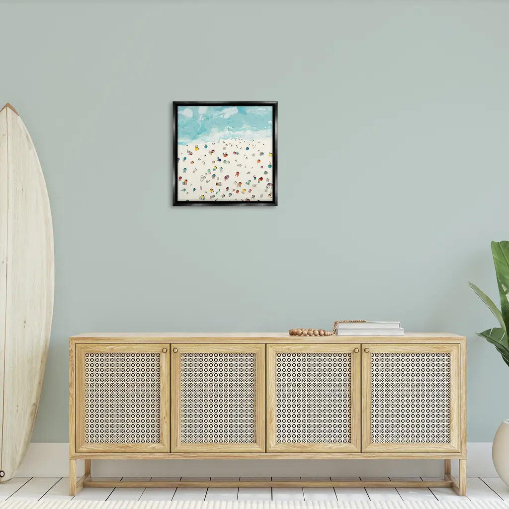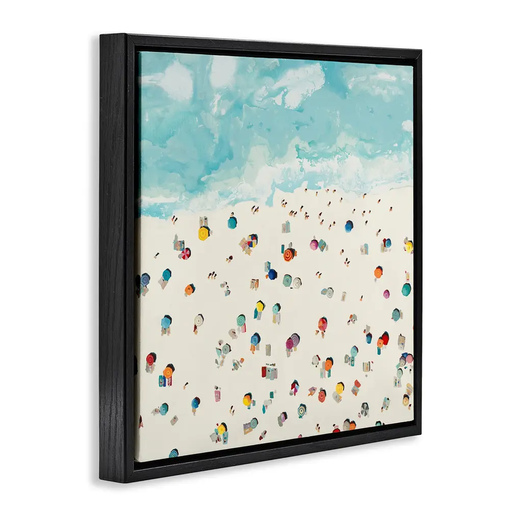 Elevate your home or office to the next level with Stupell Framed Floating Canvas Wall Art. Our premium hand-stretched canvas is mounted securely into a sturdy lightweight frame. The museum-style gap between the wrapped canvas and the box frame gives the illusion of floating artwork. Stupell Wall Art is made in the USA.Features: Dimensions: 18 x 1.7 x 18 Frame, 17 x 1.5 x 17 Canvas ArtFloating Frame Canvas Products are available in sizes 18"x18" and 25"x25". All Floating Frame Canvas Products have a 1.7" Depth.Wall Art is Ready to Hang with Hardware Free Hanging. No Installation required. For Easy Set Up Lean or Layer Artwork on Shelf or Against Wall. Artwork is Permently Fixed into the Frame.Our elevated 1.7" Thick Floating Frame is the perfect complement to our canvas style Wall Art. We use only the highest quality inks in house with industry leading printing solutions. Canvas is hand stretched over a durable wood foundation and then mounted securly into a Modern Box Frame. Made in the USA.Artwork Relates To: Beach, Aerial View, Beach Umbrellas, Modern, Abstract, Shore, CoastDesign by Randy Hibberd