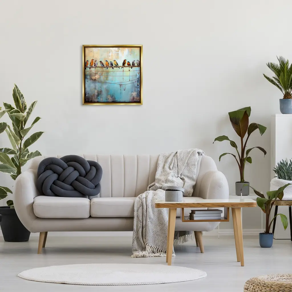 Elevate your home or office to the next level with Stupell Framed Floating Canvas Wall Art. Our premium hand-stretched canvas is mounted securely into a sturdy lightweight frame. The museum-style gap between the wrapped canvas and the box frame gives the illusion of floating artwork. Stupell Wall Art is made in the USA.Features: Dimensions: 18 x 1.7 x 18 Frame, 17 x 1.5 x 17 Canvas ArtFloating Frame Canvas Products are available in sizes 18"x18" and 25"x25". All Floating Frame Canvas Products have a 1.7" Depth.Wall Art is Ready to Hang with Hardware Free Hanging. No Installation required. For Easy Set Up Lean or Layer Artwork on Shelf or Against Wall. Artwork is Permently Fixed into the Frame.Our elevated 1.7" Thick Floating Frame is the perfect complement to our canvas style Wall Art. We use only the highest quality inks in house with industry leading printing solutions. Canvas is hand stretched over a durable wood foundation and then mounted securly into a Modern Box Frame. Made in the USA.Artwork Relates To: Painting, Animal, Bird, Jay, Robin, Bee Eater, Finch, Bluebird, Abstract, ModernDesign by Ray Powers
