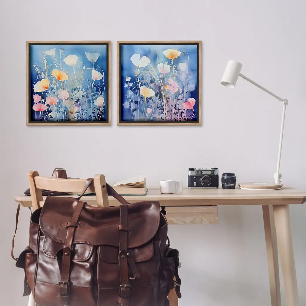 Elevate your home or office to the next level with Stupell Framed Floating Canvas Wall Art. Our premium hand-stretched canvas is mounted securely into a sturdy lightweight frame. The museum-style gap between the wrapped canvas and the box frame gives the illusion of floating artwork. Stupell Wall Art is made in the USA.Features: Dimensions: 2 Piece Set, Each Frame is 18 x 1.7 x 18Two Piece Floating Frame Canvas Products are available as 18"x18" or 25"x25" Panels. All Floating Frame Canvas Products have a 1.7" Depth.Wall Art is Ready to Hang with Hardware Free Hanging. No Installation required. For Easy Set Up Lean or Layer Artwork on Shelf or Against Wall. Artwork is Permently Fixed into the Frame.Our elevated 1.7" Thick Floating Frame is the perfect complement to our canvas style Wall Art. We use only the highest quality inks in house with industry leading printing solutions. Canvas is hand stretched over a durable wood foundation and then mounted securly into a Modern Box Frame. Made in the USA.Artwork Relates To: Floral, Pattern, Flower, Petal, Plant, Botanical, Bouquet, Modern, AbstractDesign by Irena Orlov