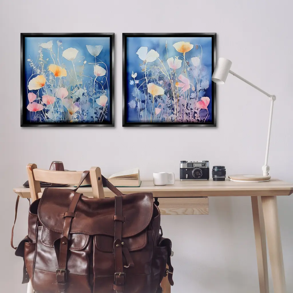 Stupell Abstract Poppies On Blue Framed Floater Canvas Wall Art Design By Irena Orlov (Set Of 2) - 25 X 25 - Black